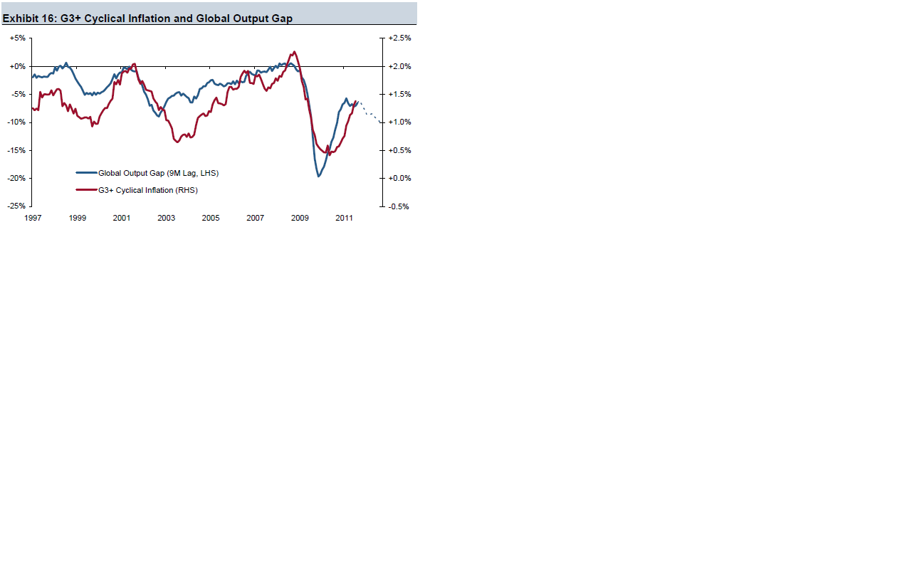 USA och Tyskland ser inte så dåligt ut faktiskt… Tittar man på hela eurozonen däremot så perkar det på RECESSION… men USA är snarare LTG, dvs 0-2%. Chart 2 är intressant. Den visar att EM 1, inte är de coupled på nåt sätt och 2, LTG miljö i DM är lika med en tillväxt på ca 5-10%. Tredje chartet visar att risken för inflation är fortsatt låg. Vi måste minst upp till 0 strecket för att vi ska börjar bli oroliga. Sen har vi ASSET inflation, men det är en helt annan historia. Den brukar tvärtom vara positiv för tillväxten.