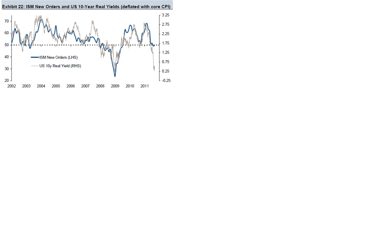 Tittar man därmot på Yield kurvan så går den mer hand i hand mer ISM New orders… skulle föreg graf ha nåt att säga så ska 10-åringen fortsätta ner mot 0. Dvs yield kurvan blir helt flat. Operation Twister någon?