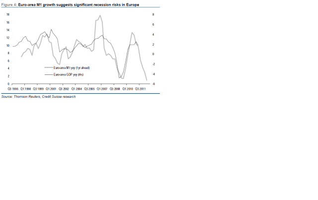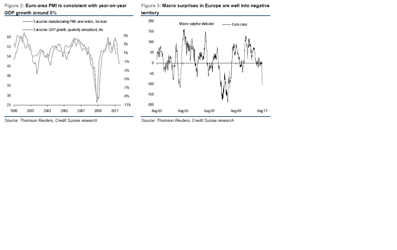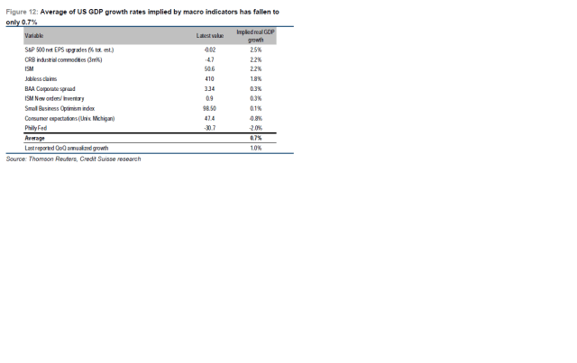 Det pekar på noll tillväxt i Europa. Enligt Credit Suisse modell så räknar dem med tillväxt på 0,7% i USA. LTG med andra ord!