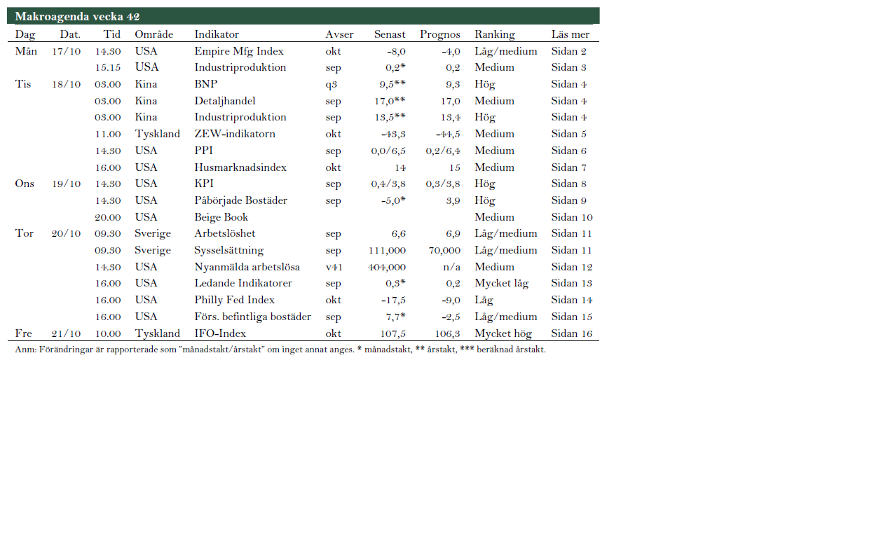 Nästa vecka fokuserar jag på Empire FED och Phily Fed från USA, IFO i Tyskland och data från Kina. Även US CPI och PPI är viktigt!