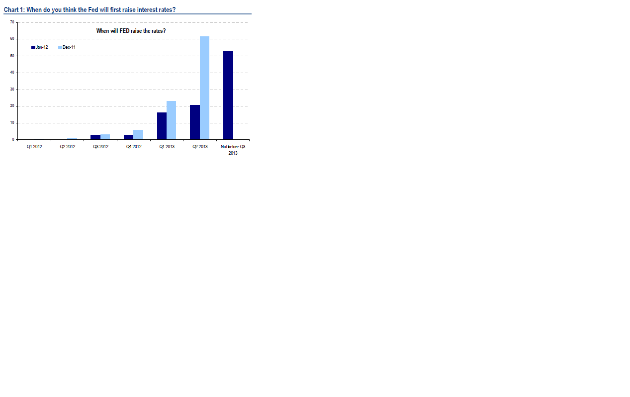 Datan från USA har varit stark (eller åtminstone starkare än Europa och inte på recessionsnivå) men trots detta väntar sig inte marknaden att FED höjer räntan under 2012. Hur tolkar man det? Marknaden tror inte att USA styrkan håller i sig… de ser USA som en svag ekonomi