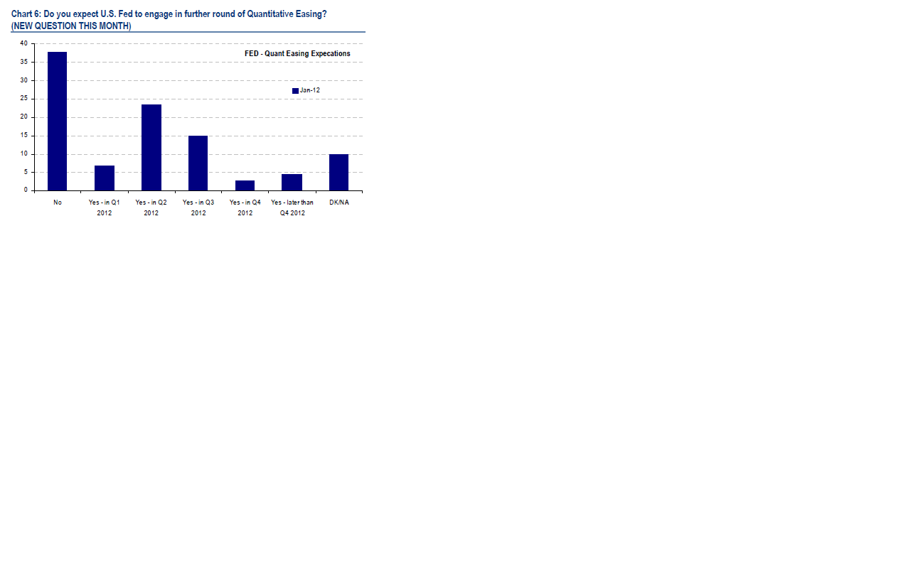 Nästan hälften tror inte på QE3 från USA. Om det kommer tror jag den initiala effekten kommer bli positiv… sen om det funkar, det är väl inte så troligt. penningpolitik funkar dåligt i en svag ekonomi, expansiv finanspolitik gör däremot.