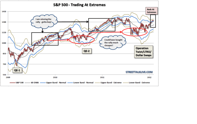 Annars misstänker jag att många sitter och tänker, ska jag hoppa på och få en hygglig börs 2012, eller ska jag avvakta en rekyl, som när den kanske kommer i bästa fall tar mig till dagens nivåer??? Tja, det kan såklart inte jag svara på. Jag tror ju personligen att uppsidan är begränsad fundamentalt, men på kort sikt kanske inte fundamenta spelar nån roll? Jag tror även att relativt små nyheter kan stjälpa det här rallyt. Men en överköpt marknad har de senaste två gångerna tenderat till att bli ännu mer överköpt. Nedan chart beskriver det rätt bra!