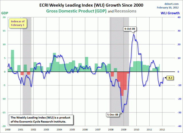 Visst, de kanske skiter i börsutvecklingen och tar bara pride i att prediktera BNP%. Men för oss investerare spelar det en jäkla roll hur börsen går. Med tanke på att ECRI index faktiskt vänt upp de senaste månaderna så undrar jag vad de säger om sitt Recession CAll. Det hade varit skrattretande om de gick ut och sa att att 1H12 blir dåligt BNP% (dvs upprepar deras prognos), men det vänder upp under 2H12. Detta skulle tyvärr vara för sent (igen!!), för börsen har redan börjat prisa in bättre tider sedan nov/dec förra året. Återigen så adderar de inte värde! Vad som hade varit intressant är om de sa att 2H12 blir recession i USA, för då betyder det att börsen har fel idag gällande sin optimistiska framtidssyn, och då kommer det vända ner kraftig förr el senare. Vad som även är intressant, men som inte går att tjäna pengar på, är om de säger att de hade fel ang 1H12, och att vi inte får recession i USA. Det skulle betyda att börsen hade fel förra året när den kollapsade mellan april och november, och därmed prisade in dåligt Q411-Q212.