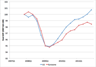 LTRO är bra, men ECB kan/får inte styra Vilka banker som kan utnyttja den óch till vilken grad. De kan bara styra kraven på säkerheter. ECB kan sen i nästa steg inte bestämma vem som ska köpa statspapper och för hur mycket. Det är alltså en väldigt trubbig typ av QE. Det fungerade rätt bra i januari, men vi vet inte exakt hur februaris program exakt kommer bistå problemländernas bond auctions.