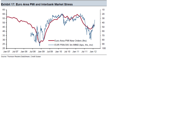 Men det är klart, ECBs agerande har hjälpt till. Den blåa visar grovt hur bra likviditetssituationen är i Europa.