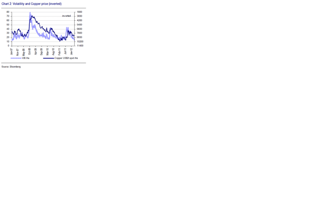 Vix och kopparpriserna går hand i hand. Faktum är att kopparaktierna är smått leading mot kopparpriset. Antingen tror man att VIX kommer stanna under 17. I så fall ska kopparpriset stiga något, och kopparaktier ralla. Nu tror jag inte på detta som ni kanske förstår, utan snarare på motsatsen!