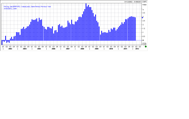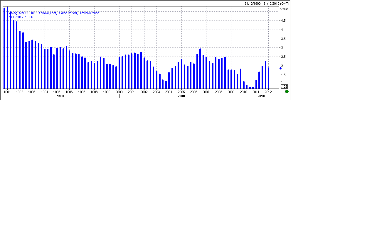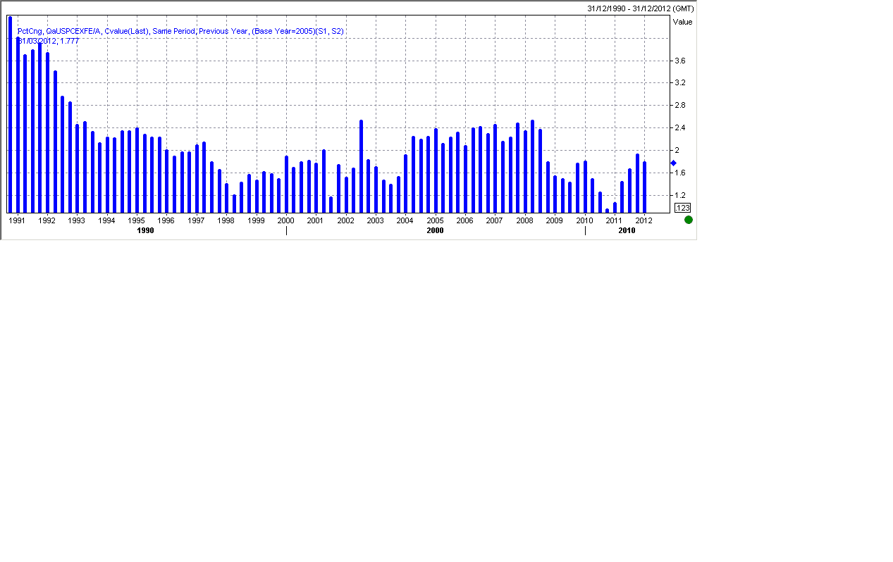 Slutligen, för att QE3 ska vara möjligt är att CORE CPI alternativt CORE PCE (personal consumption expenditures) dippar ner i likhet med vad som händer under 2H10. Där är vi inte ännu!