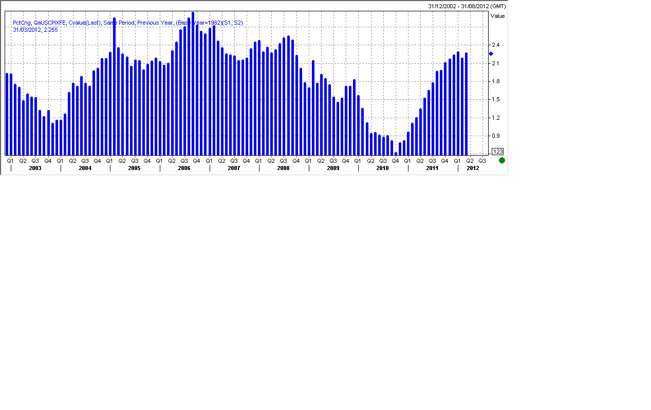 Jämför gärna med hur det såg ut under sommaren 2010, då FED började överväga QE2…. det finns inte en chans i helvetet att man lanserar QE när core inflation ser ut så här. Den måste ner till 1% eller under för att det överhuvudtaget ska vara aktuellt! Men visst, den kan falla snabbt. Å andra sidan faller den bara så snabbt om ekonomin försämras i samma takt! Det finns även scenariot där ekonomin försämras, men inflationen är sticky. Det skulle INTE vara kul!!!