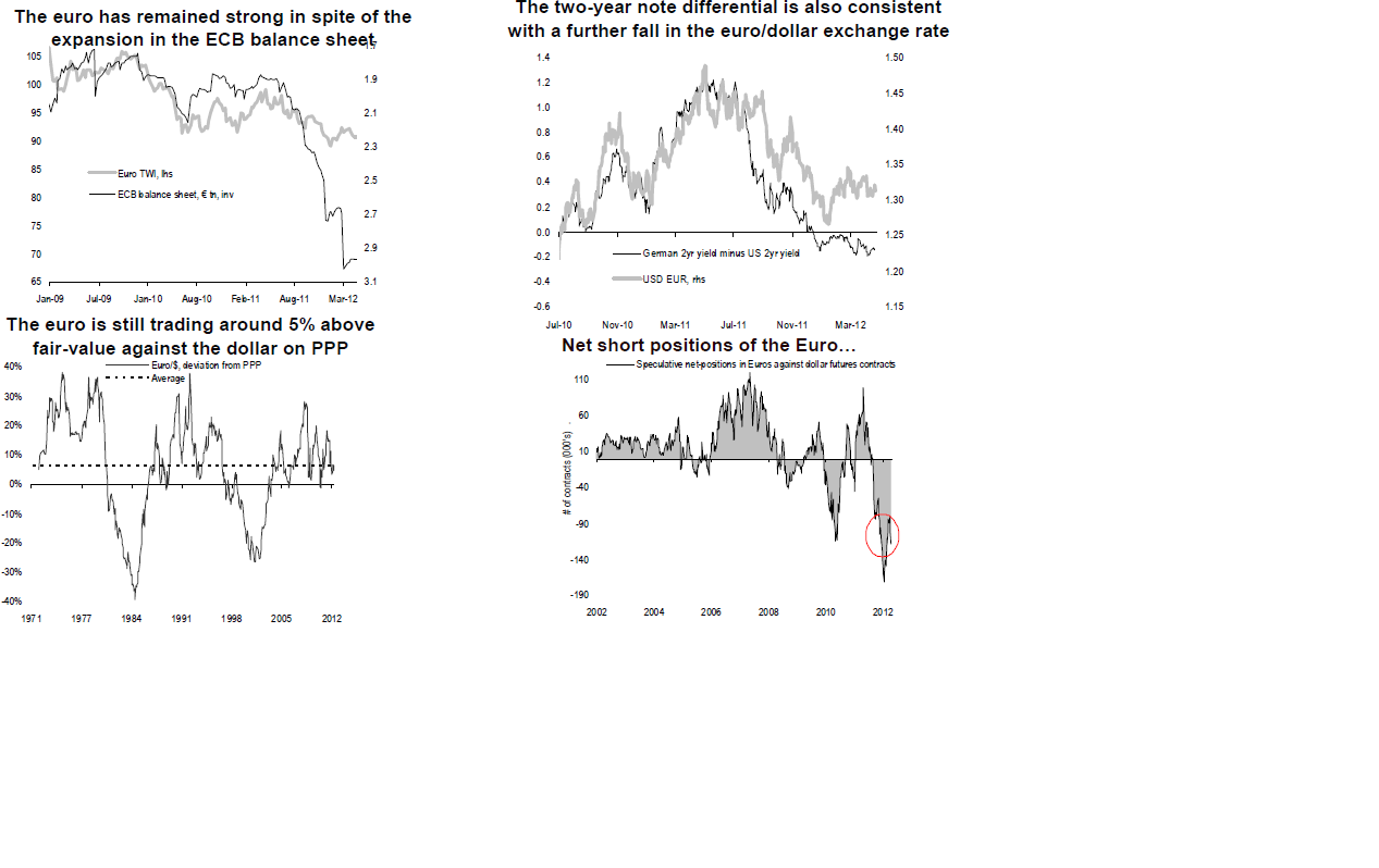 Optimisterna brukar säga att Europa är inte så illa ute som alla tror. de brukar motivera detta med att EZ public debt/GDP, Trade surplus, Budget defecit faktiskt ser rätt bra ut. Tyskland spelar en nyckelroll här förstås. Kvittot på att de har rätt, skulle vara att Euron faktiskt inte har försvagats så mycket som den borde om allt nu var nattsvart. Till saken hör att varenda kotte dessutom har blankat Euron…. och det är bara en tidsfråga innan de måste vända sina possar…..