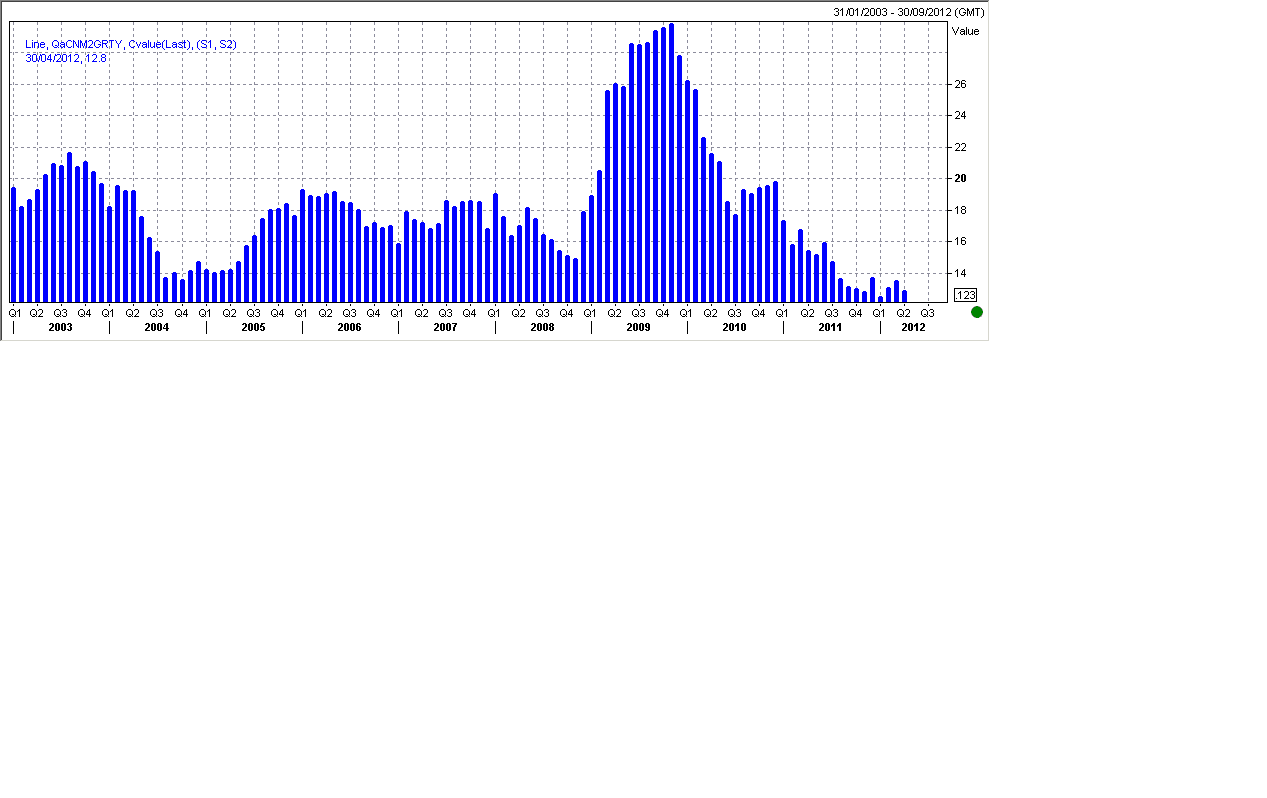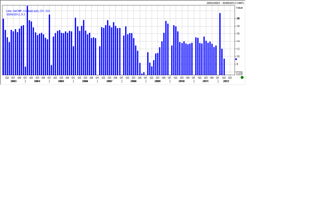 Ganska klent kan jag tycka, särskilt när PMI har börjat repa sig. De går lite i otakt. Men svag IP och inflation på rätt väg så kan jag faktiskt tänka mig att PBoC ökar på stimulanserna, i form av RRR samt puch på bankerna astt öka utlåning till främst SME företag. Samtidigt tycker jag att myndigheterna har blivit lite europeiska… dvs de säger sig vara konservativa och inflationsbekämpande ut till media, och sen får de ändå bankerna till att öka utlåningen. Nåväl, datan var inte särskilt bra, men jag tycker ändå att media överdriver något när de skriver katastrof… det ska vara IP i så fall!