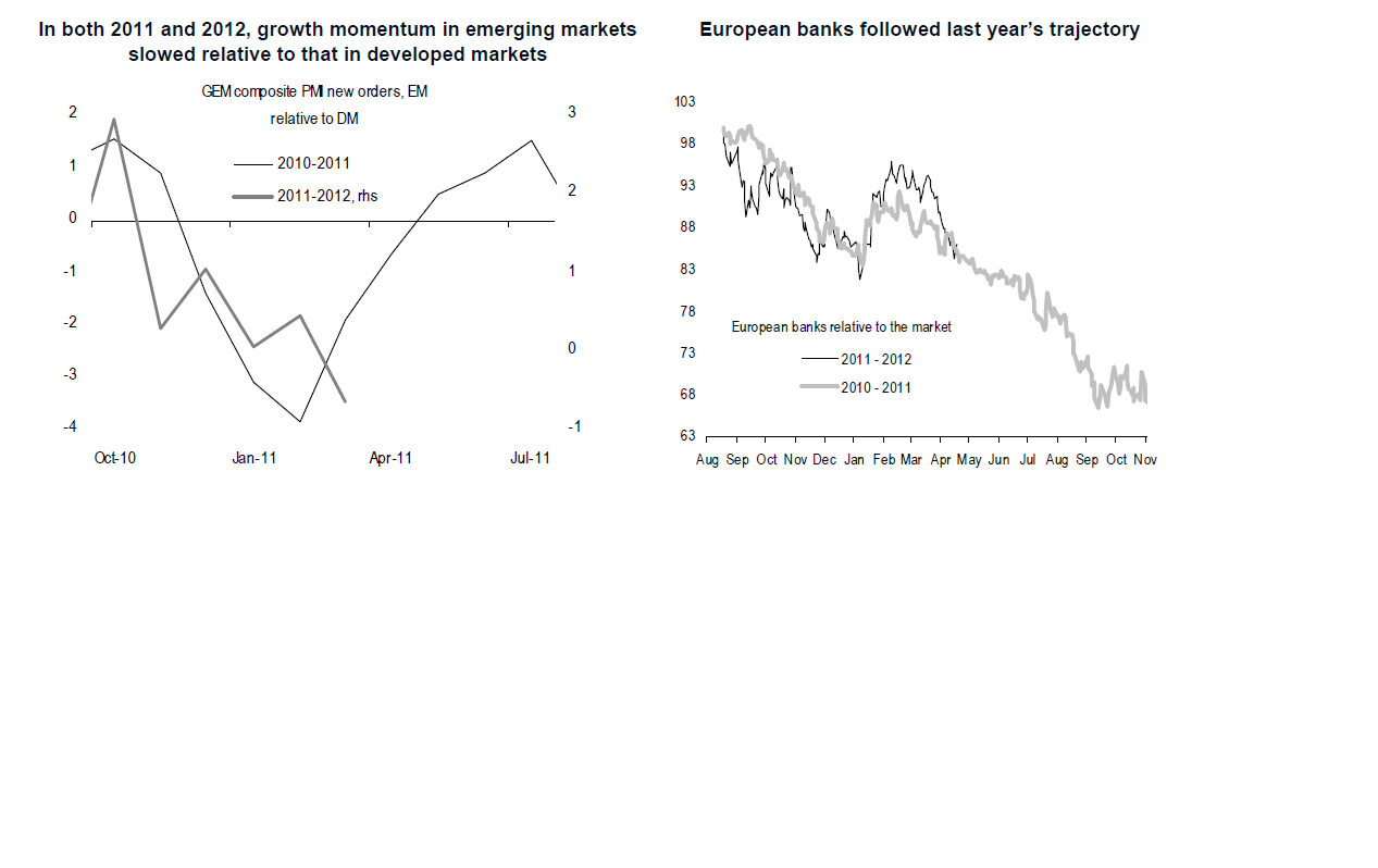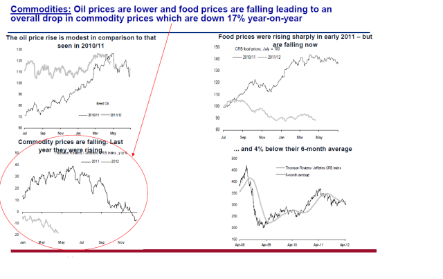 I europa har man lanserat LTRO, och bankpaket. I tillväxtmarknader ser man inflationen avta och räntorna är på väg ner. så var det inte 2011.