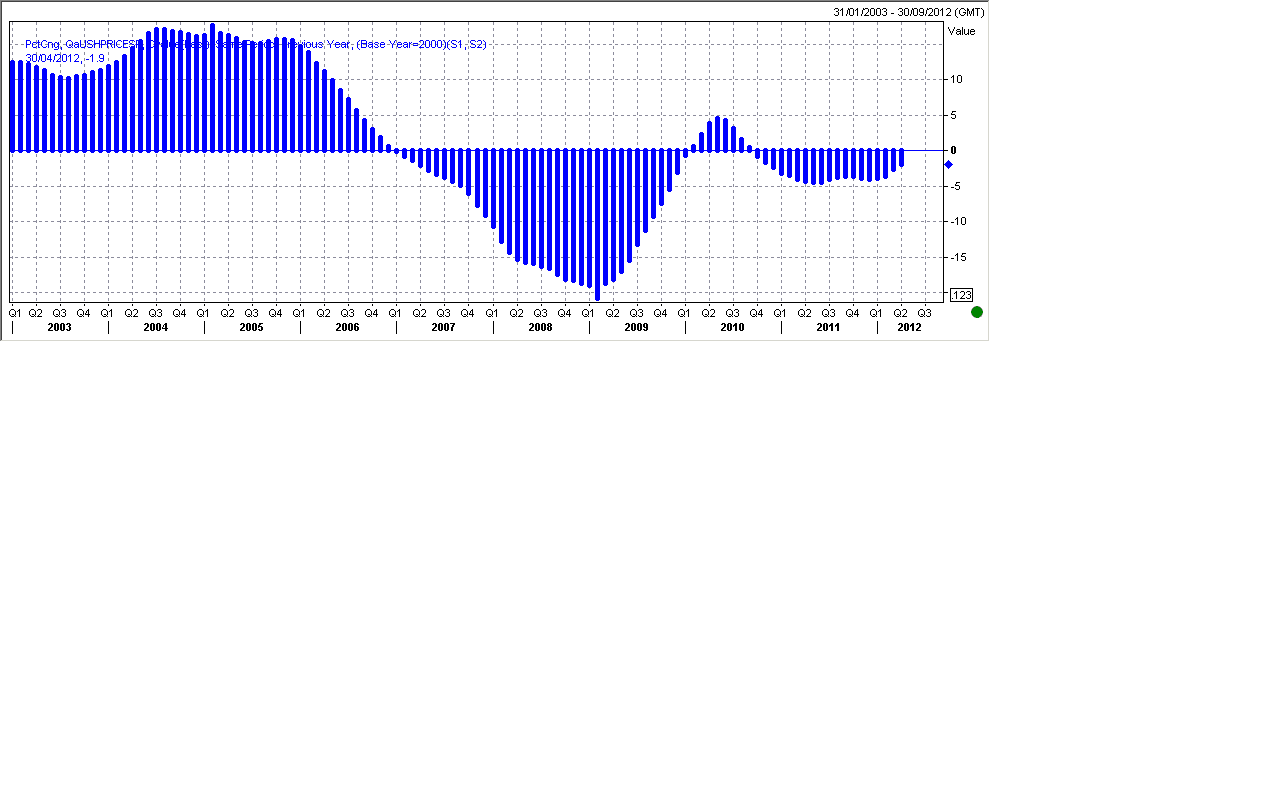 -1,9% YoY mot väntat -2,5 och föreg -2,6 enligt Shiller.. bättre, men egentligen betyder att priserna är fortsatt flat… sedan 3 år faktiskt! Tittar man kortsiktigt så har prserna fallit sedan mitten på 2011, men ser nu ut att vända upp något!