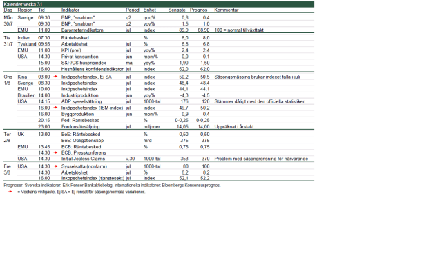 Veckan som kommer bjuder på mycket viktig data i form av inköpschefsindex, sysselsättningsdata samt ECB möte.