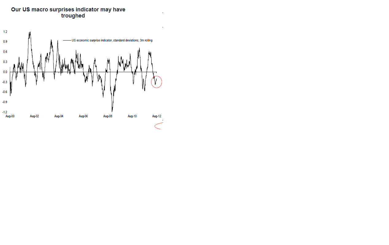 Macro surpriseindex ser ut att ha bottnat… det brukar vara positivt för aktier! (och har nog också delvis förklarat sommarens uppgång)
