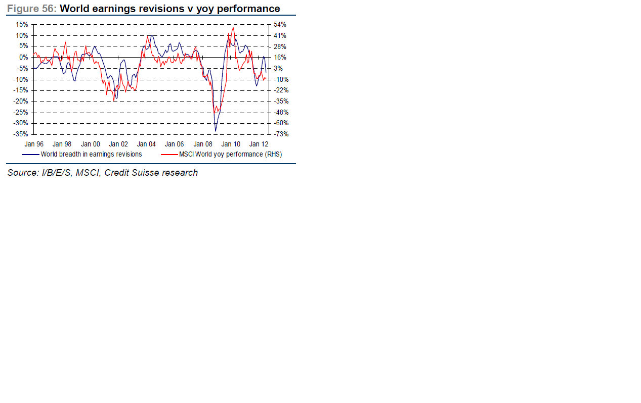 Nedan visar breadth, alltså upprevideringar i förhållande till ned revideringar, och alltså inte 12m fwd EPS%, som är den jag gillar mest!