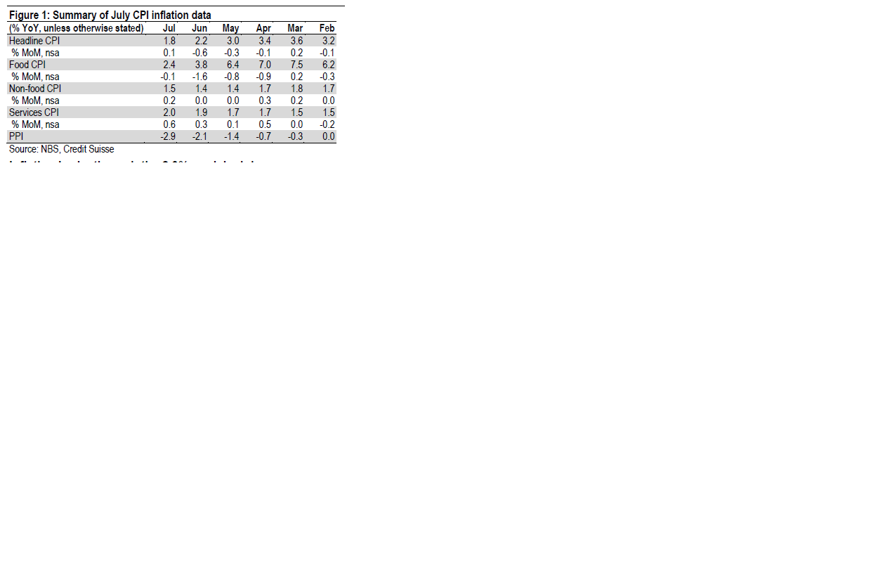 Samtidigt om man tittar på Non Food inflation så sjunker inte den lika tydligt längre. Inte heller Service inflation gör det utan man kan nästan se tecken på hur den bottnade i våras. Point being, även om PPI pekar på ytterligare nån månad av låg inflation så kan vi inte förvänta oss mycket lägre inflationstakt framöver. Då är det mer troligt med ”lower for longer”… lite beroende på vad PBoC hittar på!
