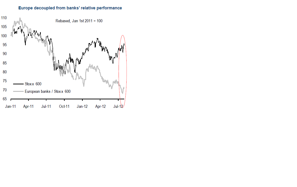 visst har defensivt gått bra, och cykliskt kanske är nästa… men den stora laggarn är såklart BANKER. Skulle vi få en genuin risk on miljö räkna med dem!!! Som ett exempel kan nämnas Greklands största bank, NBG, National Bank of Greece. Den handlade i 37EUR på toppen 2007. Senast kurs 1 EUR. Den går inte att räkna på, men alla förstår nog vad som kan hända i en RISK ON miljö… därmed inte sagt att den kan gå till 0,10 EUR vid en fortsatt försämring!