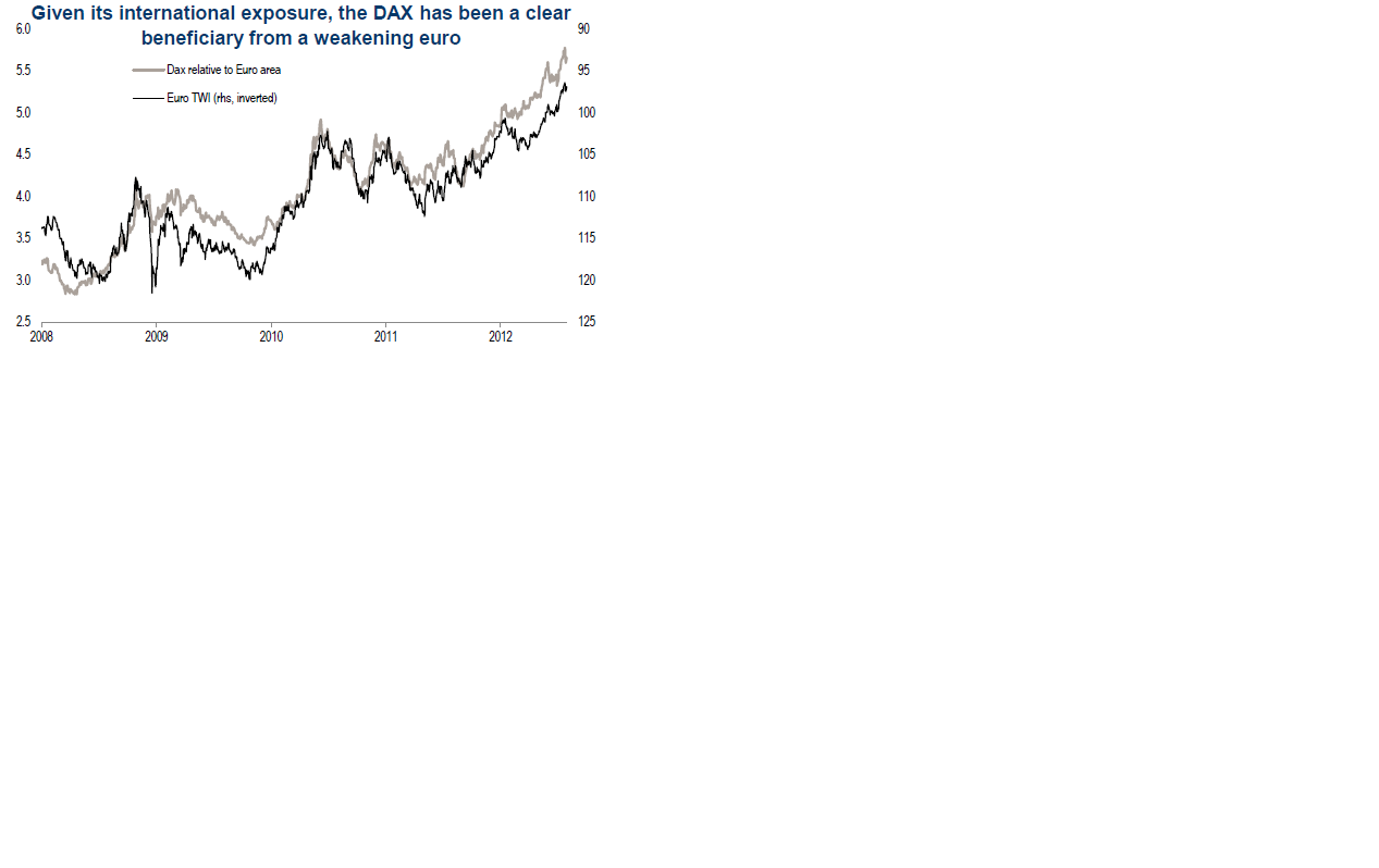 Mén allt går inte dåligt i europa pga en svag EUR. Tyskland gynnas oerhört, vilket DAX outperformance visar!