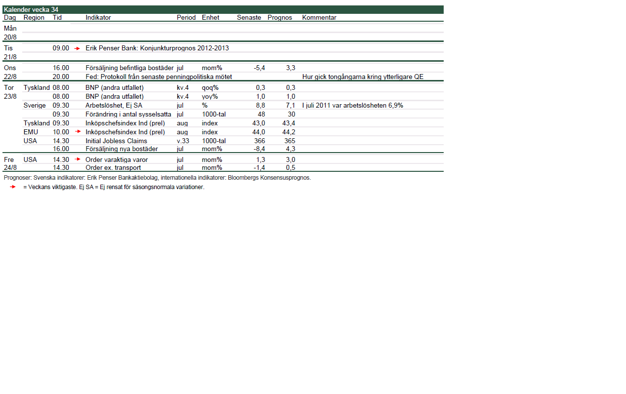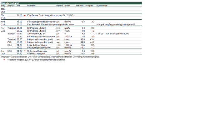 Det viktigaste är Flash PMI från Europa och Kina, på torsdag resp fredag. Men vi har även US Durable good and orders samt Richmond FED PMI på fredag. Den senare brukar jag inte fästa nån större vikt vid bortsett från att den har pekat på en krafitg försämring av ISM på sistone… så den vill vi att den vänder upp!