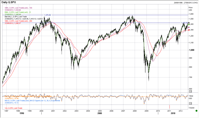 Index har precis passerat årshögsta och har inte stått så högt sedan våren 2008. Nu är det bara ca 10% kvar till topparna runt år 2000 och 2007.