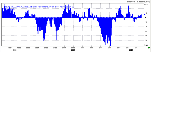 För en stund sedan kom Richmond Index. Inget jag följer direkt men baissarna fick vatten på sin kvar sist. Se https://kortsikt.com/2012/07/30/july-macro-wrap-up. Ser man till dagens sifffra kom den in på -9 mot föreg. -17. Ser man till hur det guidar ISM så är det en liten förändring, fast i rätt riktning!!!