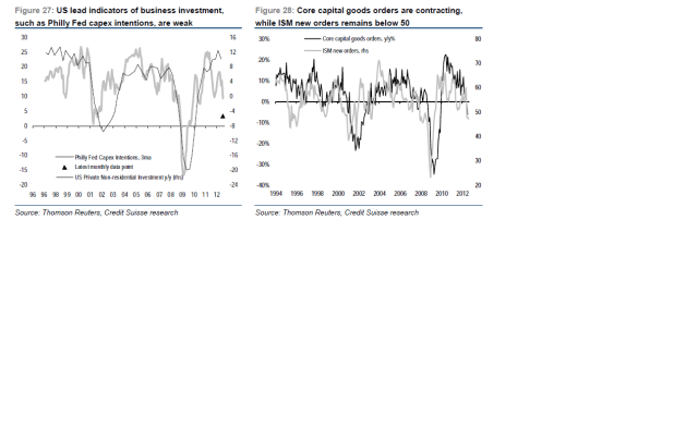 CS tror ju också på QE3, mycket pga av att indikatorer pekar på svag tillväxt inom capital goods och investeringar. Ofta brukar de gå hand i hand med aptiteten att nyanställa, vilket är logiskt. Vågar du investera, så vågar du rekrytera.