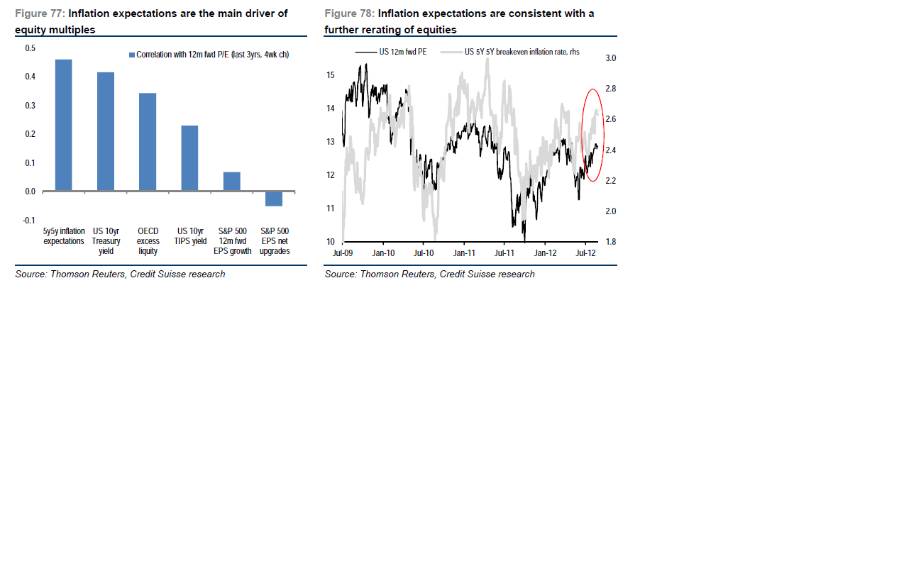 De har även tittat på vad som driver PE multipeln, och det är inte E-revisions. Det är snarare inflationsförväntningar.Dvs går räntorna upp, typ US 10yrs, så får du multipelexpansion. Punkt!