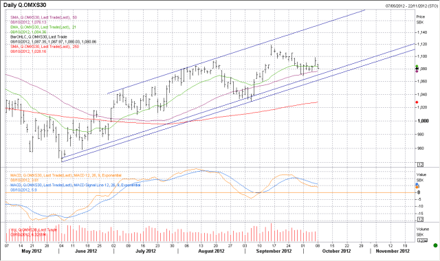 Rent tekniskt hoppas jag fortfarande på att vi laddar inför ett year end rally. Brott av 1099 kan betyda att vi är på G. Caset är intakt så länge som trenden håller… se nedan