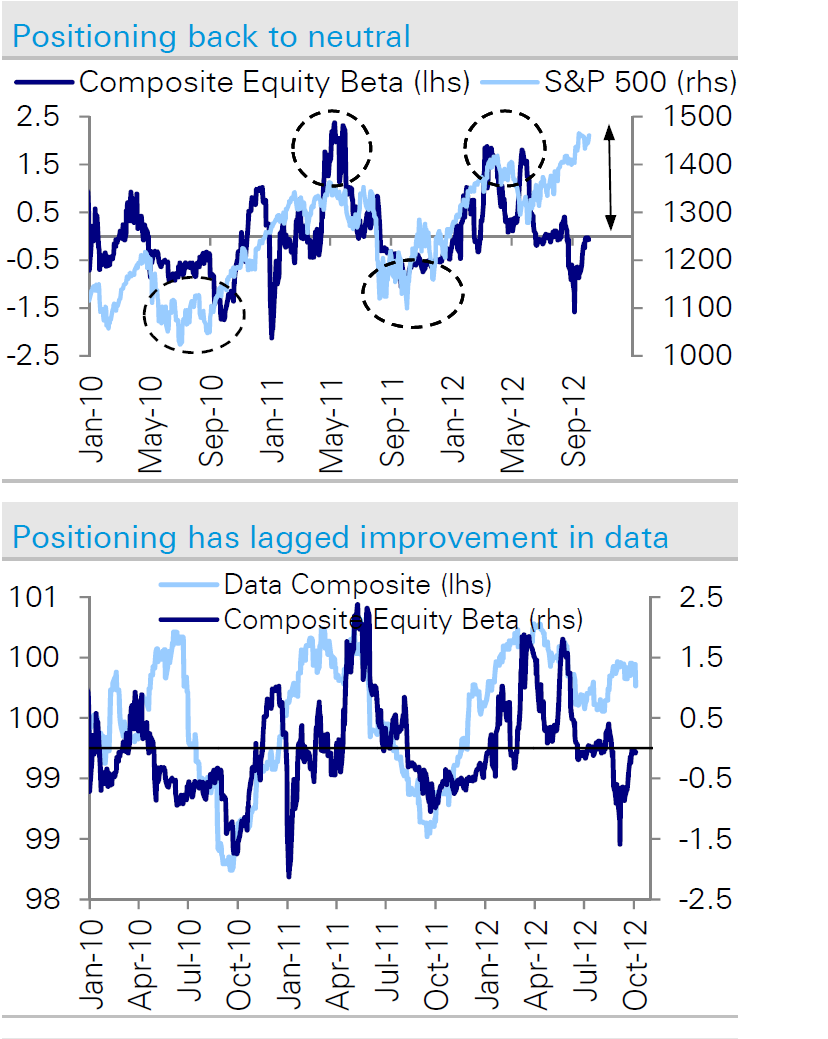DB trackar beta bland fonder. Dvs desto mer beta, desto större känslighet mot börsen. Beta (dvs förvaltarnas vilja att vara exponerad mot marknaden) är tajt kopplat mot makrodata. Man kan konstatera att förvaltarna tog ner beta i maj dippen och sen missade hela rallyt sen dess. Fortsätter datan komma in starkt så blir de nog stressade och vill öka upp sina positioner, vilket leder till inflöden, vilket är bra för börsen.