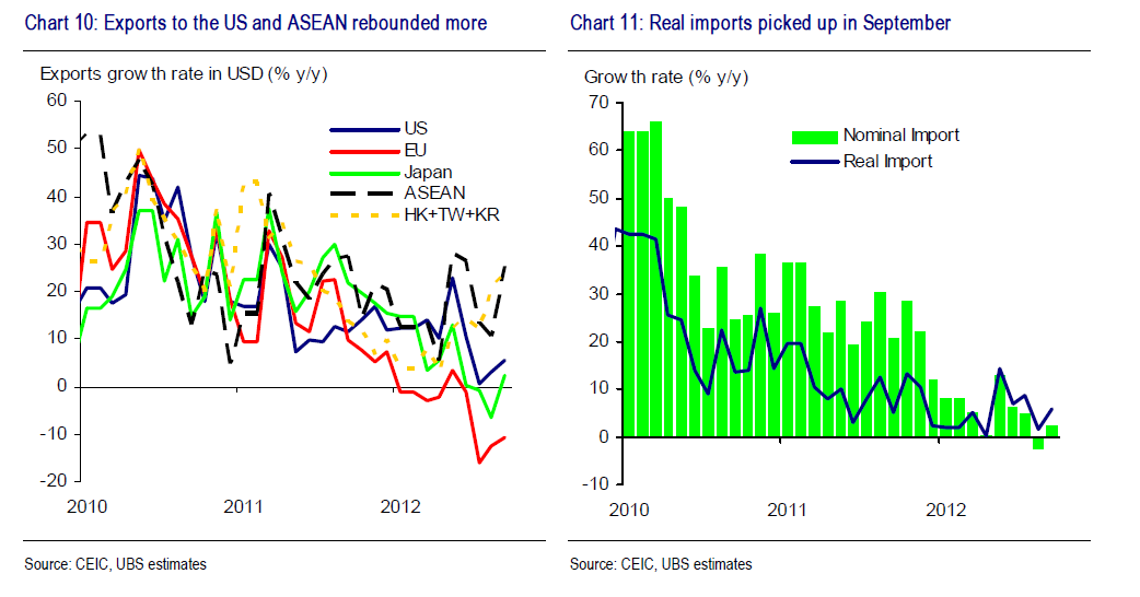 Exporten repar sig, vilket är ett tecken på att omvärlden mår bättre. Tittar man på detaljerna bidrar fortfarande Europa negativt och tvåsiffrig minskning. Det rimmar med datan vi sett från Europa. USA är svagt positivt vilket också rimmar rätt väl. De som bidrar positvit är alltså Asien ex China. Importen är fortsatt svag även om den vänt upp från negativt område. Tittar man på detaljerna så är det framförallt råvaruimporten från Australien och Brasilien som är svag. Med tanke på hur viktig ”I”nvesteringsdelen är för den Kinesiska ekonomin så börjar man ju undra. På onsdag kommer första siffran över 3Q BNP.