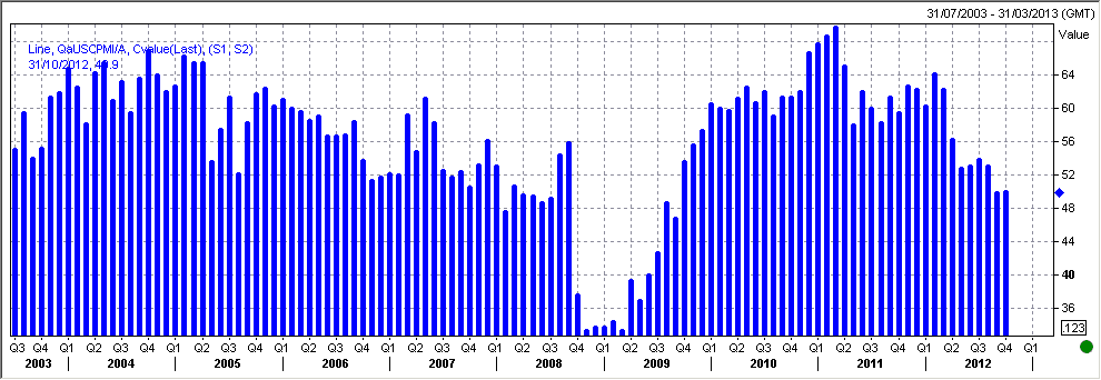 Historiskt har Chicago PMI varit en hygglig guide till ISM. Dock inte på sistone. Särskilt förra månaden var klart missvisande.