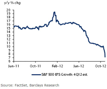 Rapportperioden börjar lida mot sitt slut. I USA har den inte varit så bra för revisions av Q412… Under hela första halvåret väntade sig analytikerkåren en tillväxt under sista kvartalet på ca 16%. EFter Q2 började man revidera ner mot 10%. När vi gick in i Q3 sa man att förväntningarna var mlt lågt ställda. Inte tillräckligt verkar det som då nedrevideringarn fortsatt mot 6% YoY. Apple spelar tydligen in en hel del!