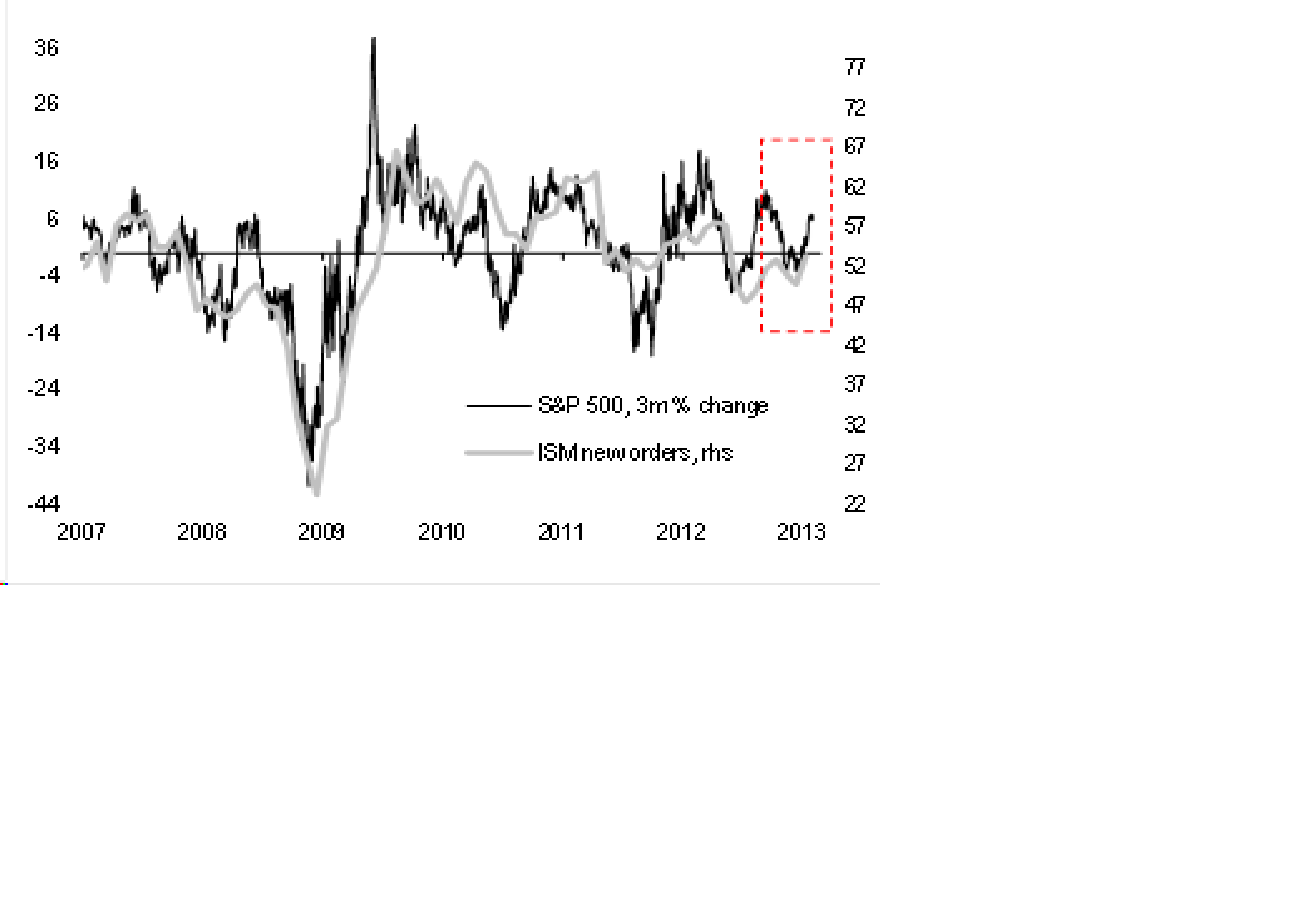 Ska man också vara helt ärlig borde New orders/inventories tar fart ordentligt om man tror på en starkare recovery under 1H13… den pekar tvärtemot på 0% IP tillväxt..
