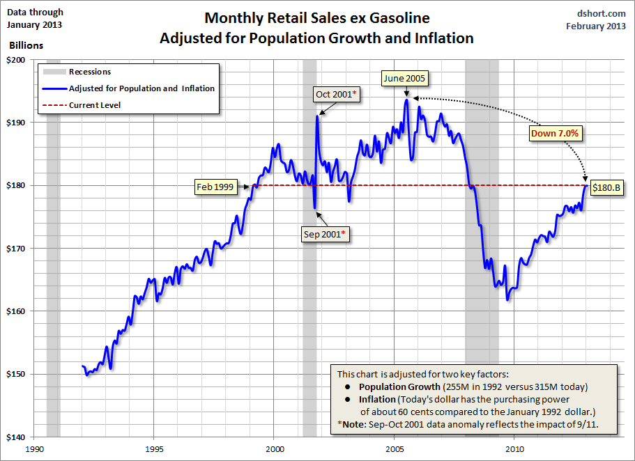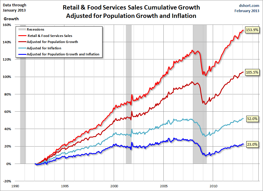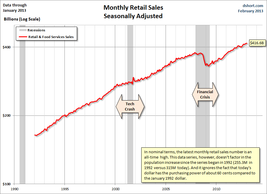 Igår kom som sagt US Retail Sales data. Det var den högsta uppmätta siffran i absoluta termer någonsin, vilket skulle kunna ge känslan av att Amerikanarna shoppar mer än någonsin, och att de inte alls har det särskilt magert!