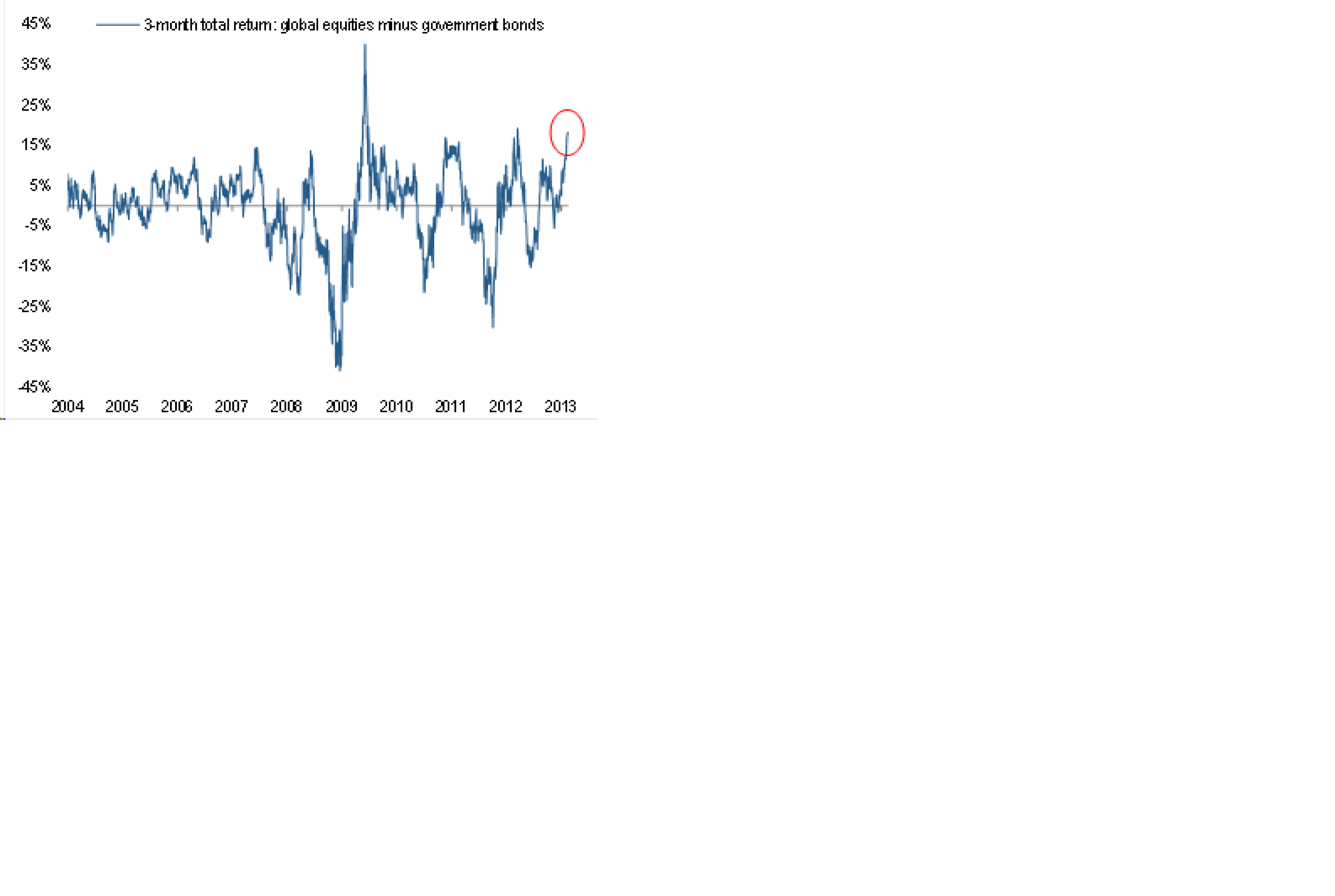Det här är en rätt simpel taktisk indikator som säger att man ska ta det försiktigt med aktier nu… jag håller med. Dessvärre är den ganska dålig som markettajmer.