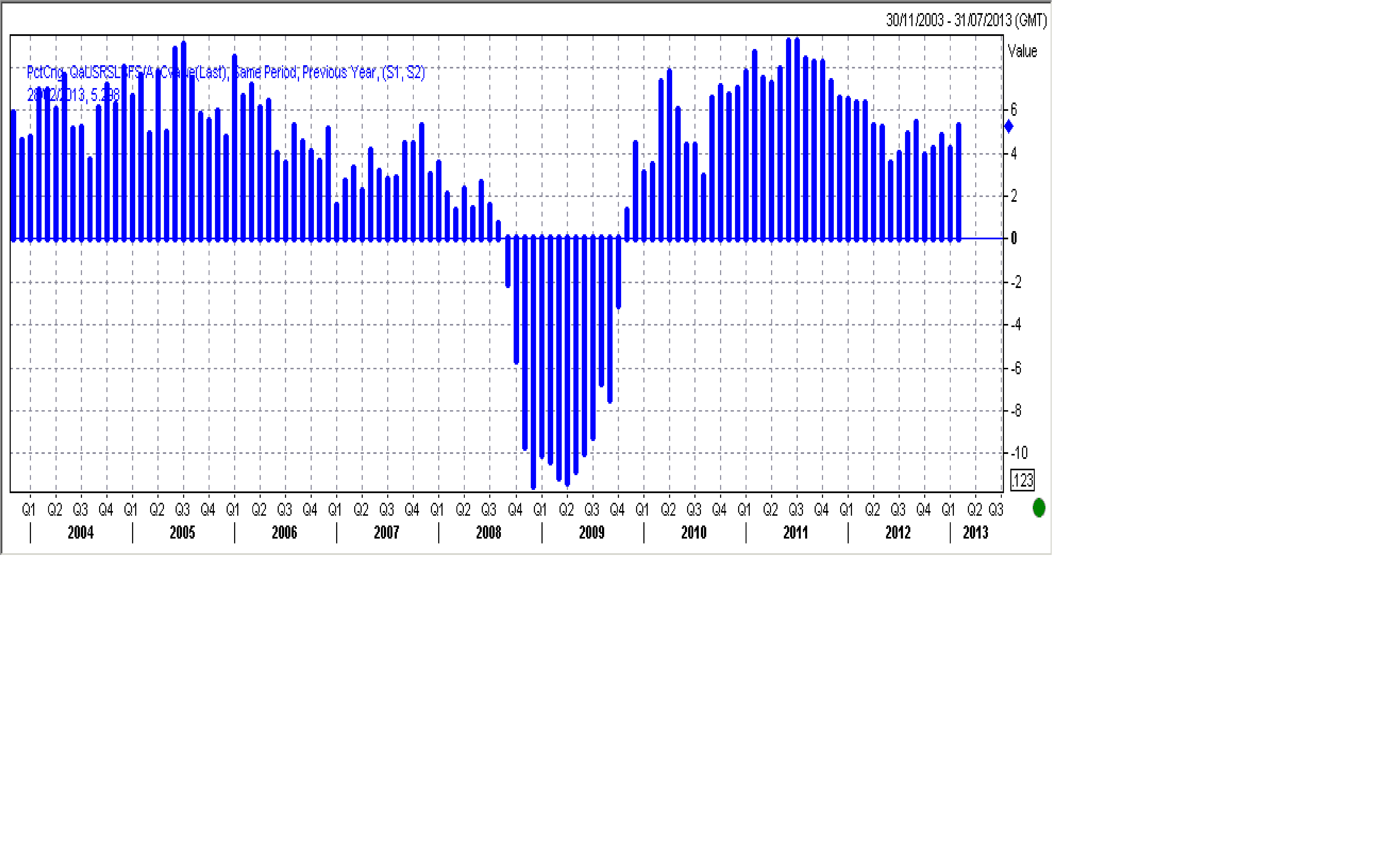 Ser man till YoY% ligger den på 5,3%, vilket är 5månaders bästa, och en ganska hygglig nivå ur et historiskt perspektiv. I takt med att cons confidence och husmarknaden blir bättre så kan den nog leta sig tillbaks mot 6%+ nivåer. Det är också relvant att titta på den ur reala termer, och även där ser det ok ut!