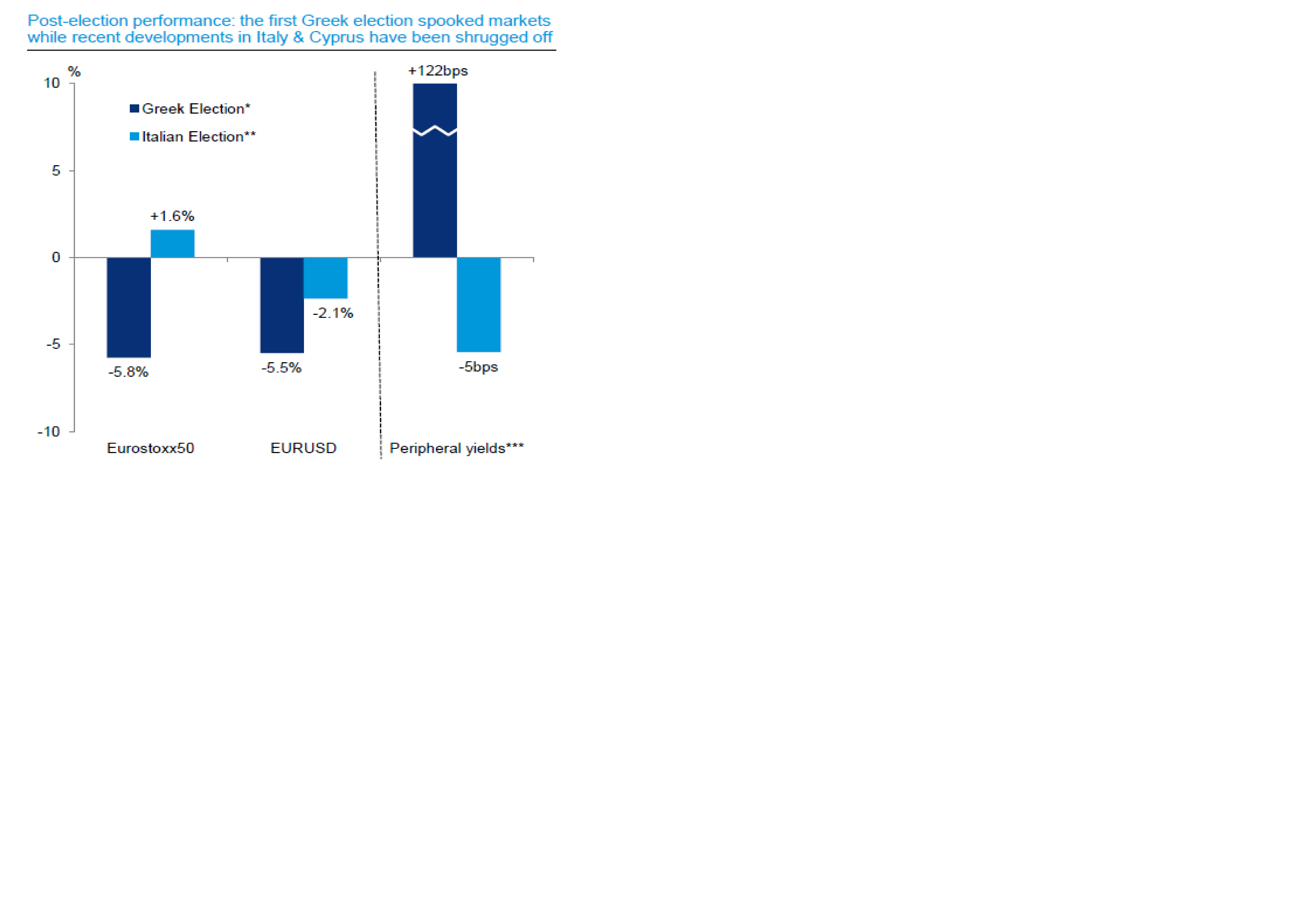 Slutligen konstaterar DB att trots misslyckade val i Italien och kris i Cypern så håller sig marknaden. Ni kommer ihåg hur det gick när det var kris i Grekland. Då gick marknaden ner! DB tes är att det beror på Draghis paket ESM/OMT som lanserades förra hösten som utgör krockkudde och gör så att marknaden inte vill göra en sell off… time will tell!
