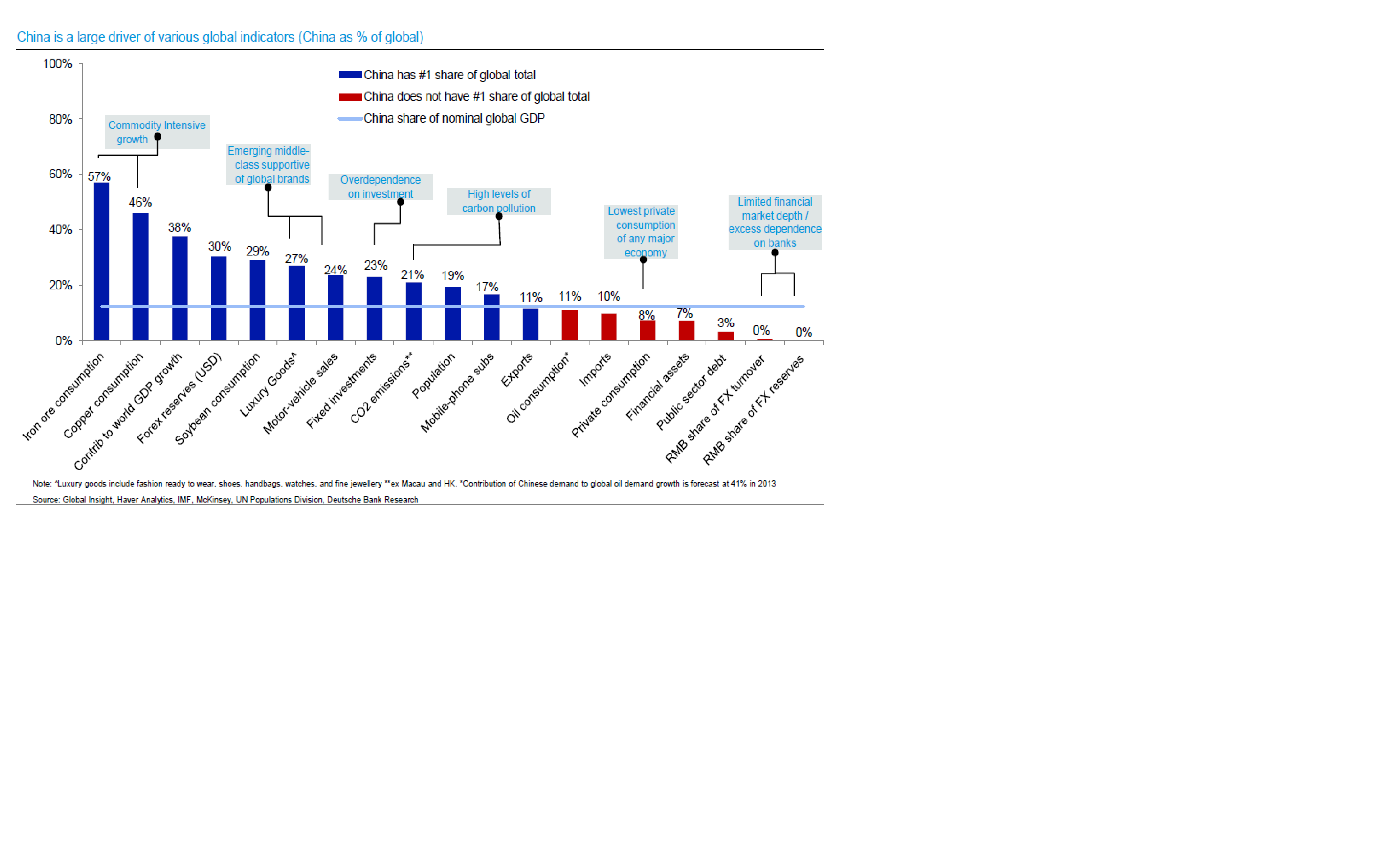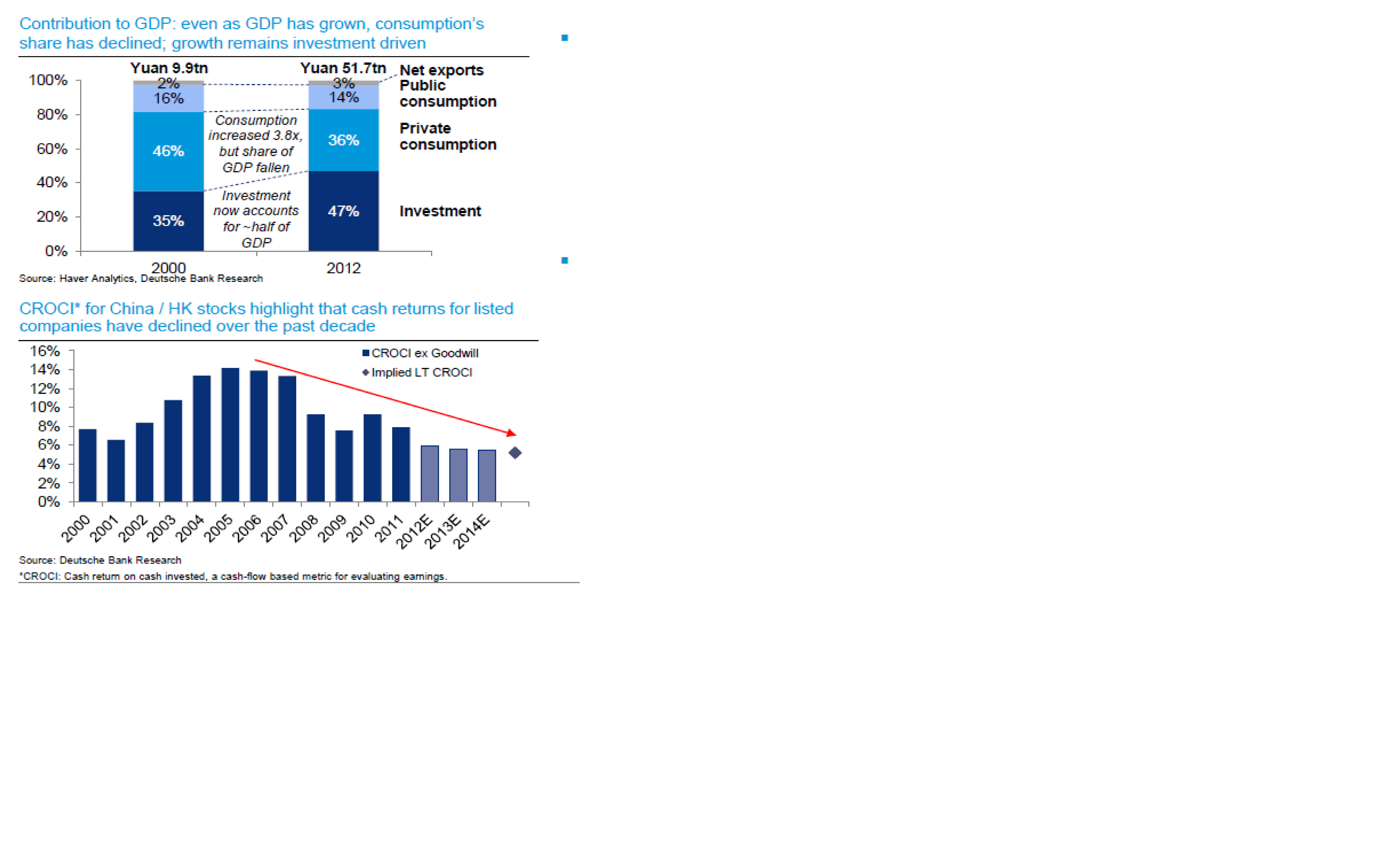 Läste en intressant rapport från DB. Nu när USa går hygggligt och Europa börjar vädra morgonluft och Japan.. ja vad ska man säga så är Kinas inbromsning en nagel i ögat. Kinas välmående är trots allt viktigt för världskonjan och vi vill inte se en black swan här. Månad efter månad har vi sett hur tillväxtprognosen för BNP skruvas ner och många västerländska analytiker undrar varför man inte gör mer från Peking. Men att fokusera på BNP tillväxt är inte rätt metod. Kinas tillväxt har främst drivits av Investeringar, rättare sagt 1, bostäder 2, Infrastruktur samt 3, Industriella investeringar. För mycket av den här varan bygger upp obalanser. Bostäder bygger upp risken för en bostadsbubbla och Industriella investeringar leder ofta till överkapacitet och fallande produktivitet. Infrastruktur är mer speciell men i Kinas fall handlar det om att belåningen på kommunnivå börjar bli obehaglig vilket får sideeffects på de lokala bankerna. Detta ”I” bekämpas för att inte byggas upp risker, eller snarare ta ner de risker som finns idag, så är det framförallt detta som påverkar tillväxten de kommande åren negativt. Nej det som vi vill ska växa, trots att ”I” avtar är Privatkonsumtion, reallöner, produktivitet, import exkl commodities, sysselsättning osv. Det är de här komponenterna som kommer att gynna USA och Europa positivt. Inte om man bygger nya bostäder, eller en fabrik till eller en bro som ligger på fel ställe. 1980 befann sig ca 80% av Kinas befolkning i fattigdom, idag är samma siffra 10%. Det är Kinas efterfrågan av våra varor som ska börja betala sig, inte vår aptit på deras.