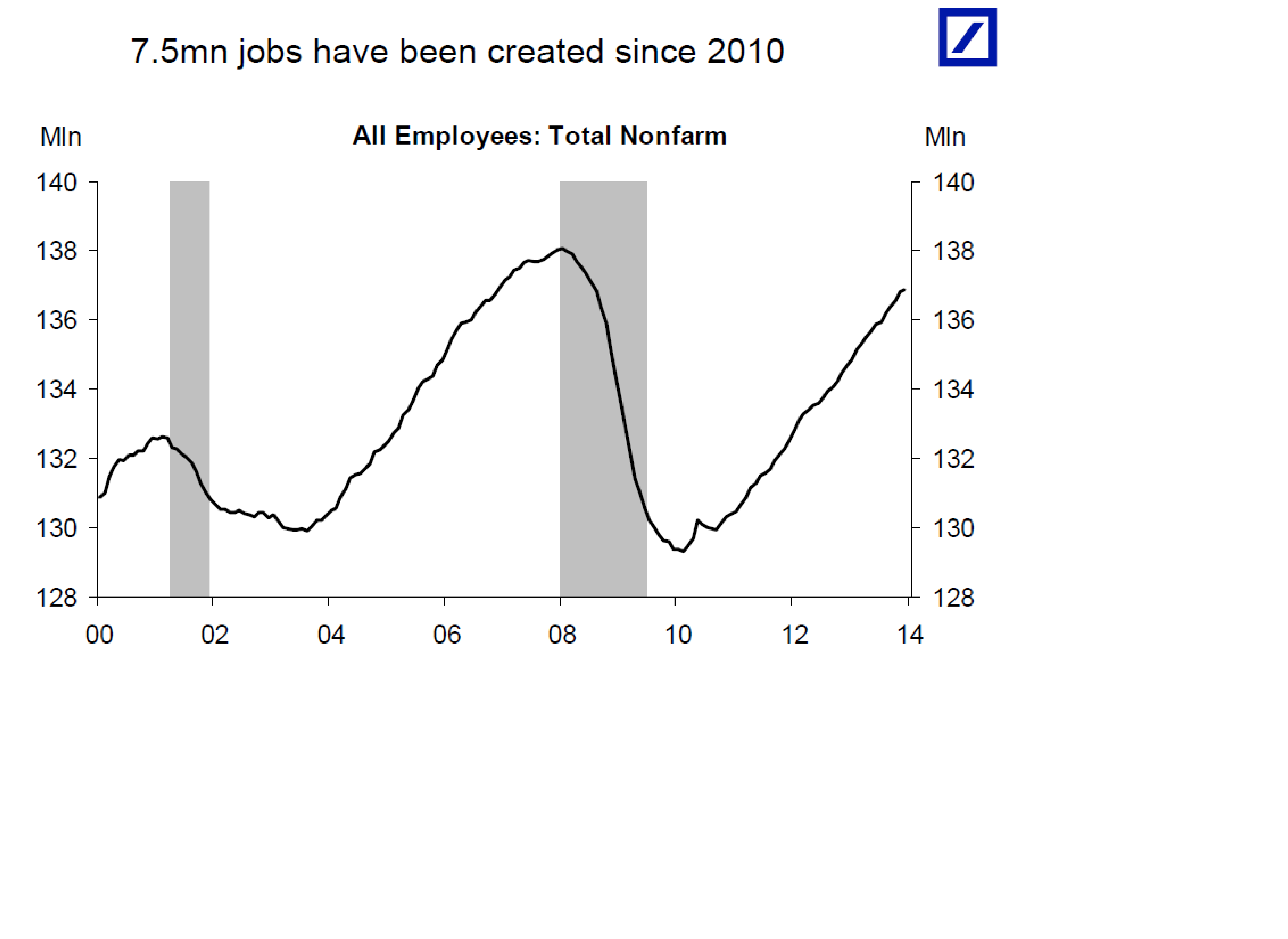 Se nedan chart. Det är alla registrerade skattebetalande ARBETANDE Amerikaner, enligt NonFarmPayrolls. 137 miljoner. Vi är snart tillbaks på toppen under tidigt 2008 🙂 Fin trend sedan början av 2010 då det har skapats 7,5 miljoner nya jobb, eller ca 156,000 jobb i månaden.