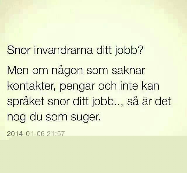 Men växer du upp i Sverige idag så är det ditt ansvar att skaffa dig ett jobb. Ingen annans! Faktum är att har du gått i Svensk skola 12 år och inte ens lyckas med få ett McDonalds jobb… vad är det för fel på dig?