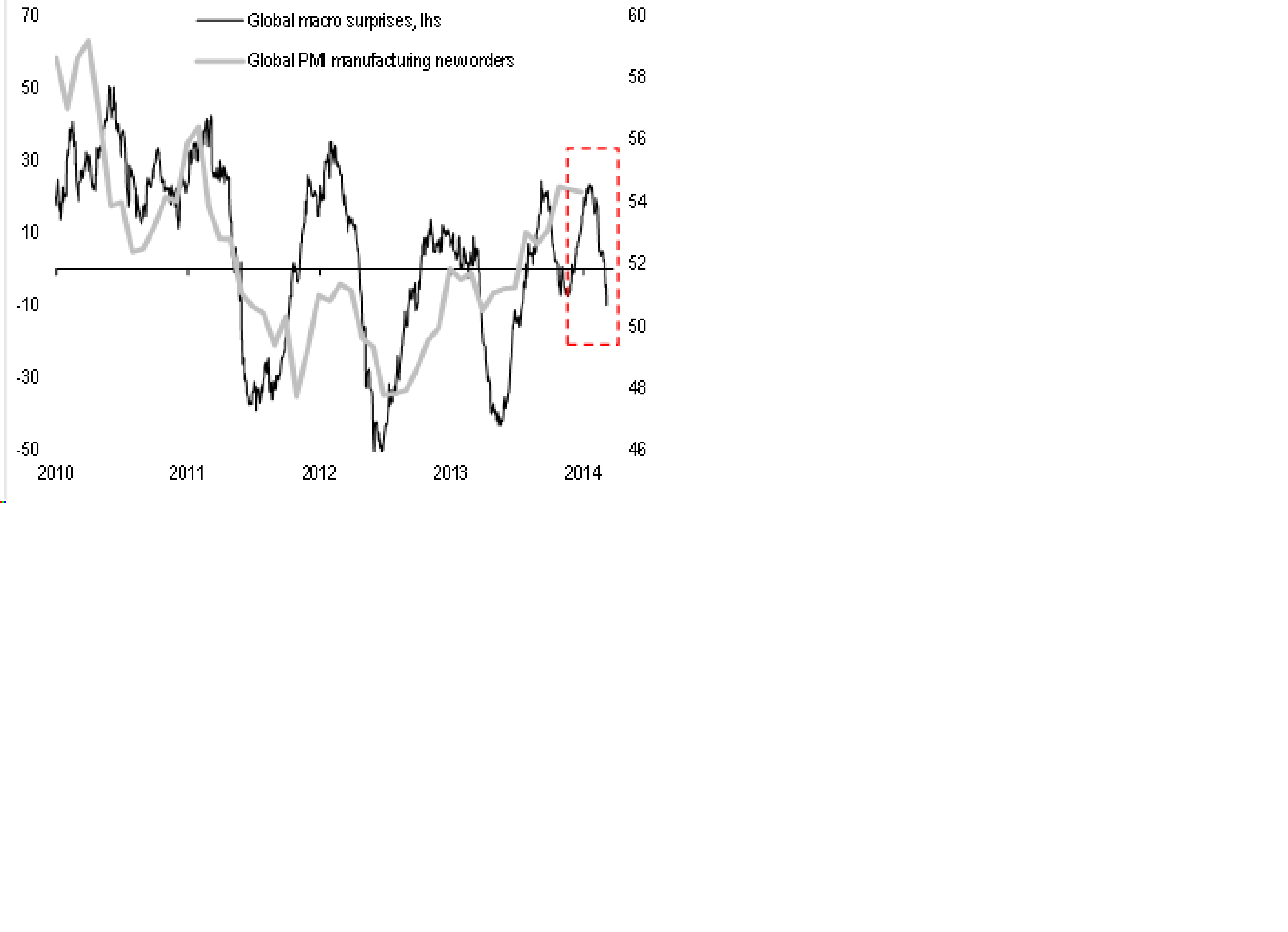 A slightly more hawkish Fed: markets typically do not correct until six months before the first rate hike or three to four weeks after the end of QE. This implies late Q4 is the problematic time for equities. The ECB and BoJ might be more dovish than consensus expects;