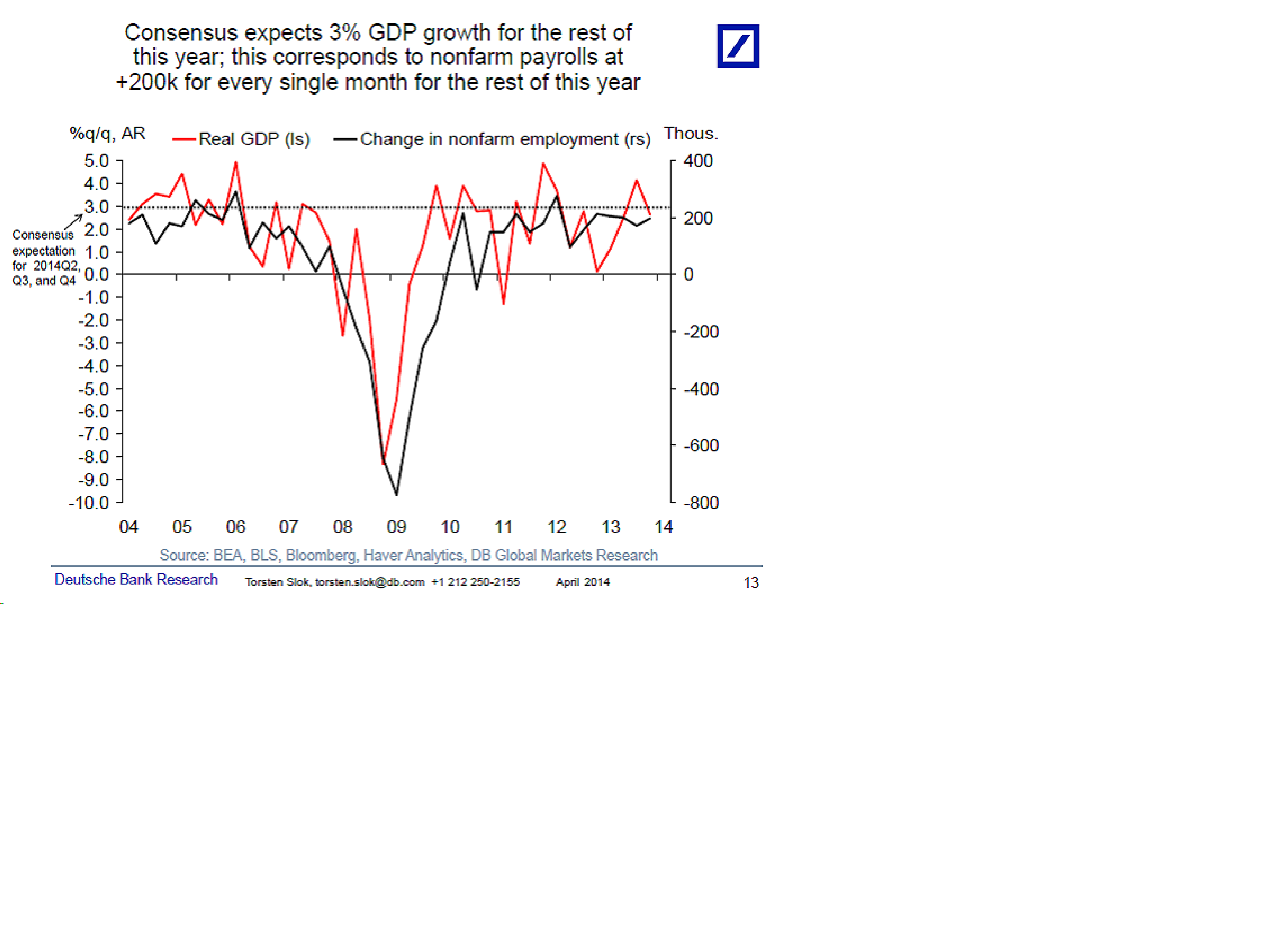 Om Ekonomerna får rätt så kommer det alltså ganska snart att börja produceras en hel del jobb. I samband med det finns det anledning att tro att löneinflationen kan komma upp ytterligare, och som ett brev på posten kommer högre räntor och räntehöjningssnack från FED. DB ser enkelt hur räntor, korta som långa, borde kunna stiga minst 100 punkter härifrån. Jag håller med!