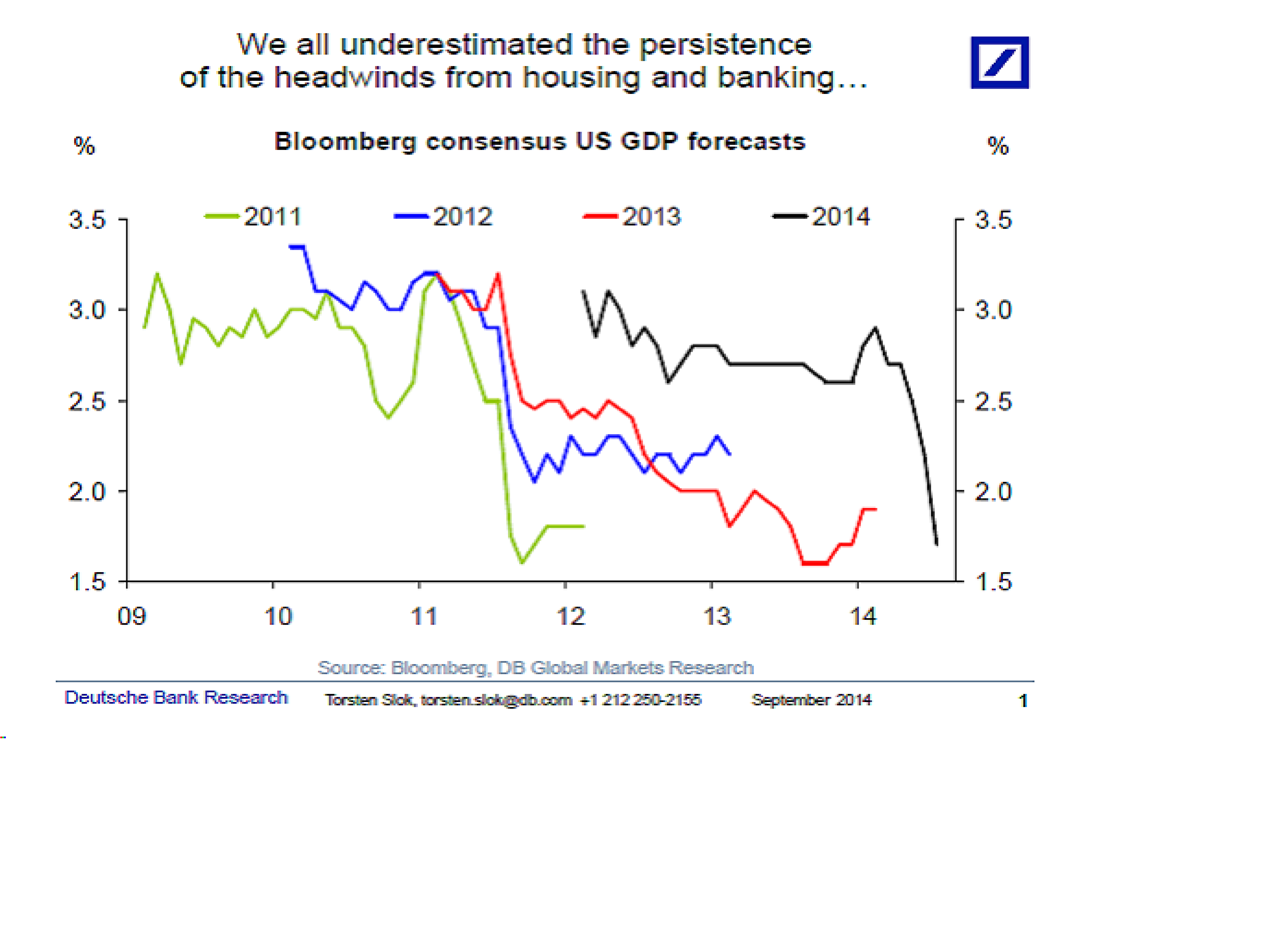 Trots att det faktiskt skapats en hel del jobb i USA senaste åren, så har tillväxten varit muted. De första åren drogs tillväxten ner av privata sektorns skuldsanering. Å andra sidan var Obama väldigt stimulativ. På senare tid har skuldsaneringen planat ut och till och med vänt, men samtidigt är Obama betydligt mer återhållsam.