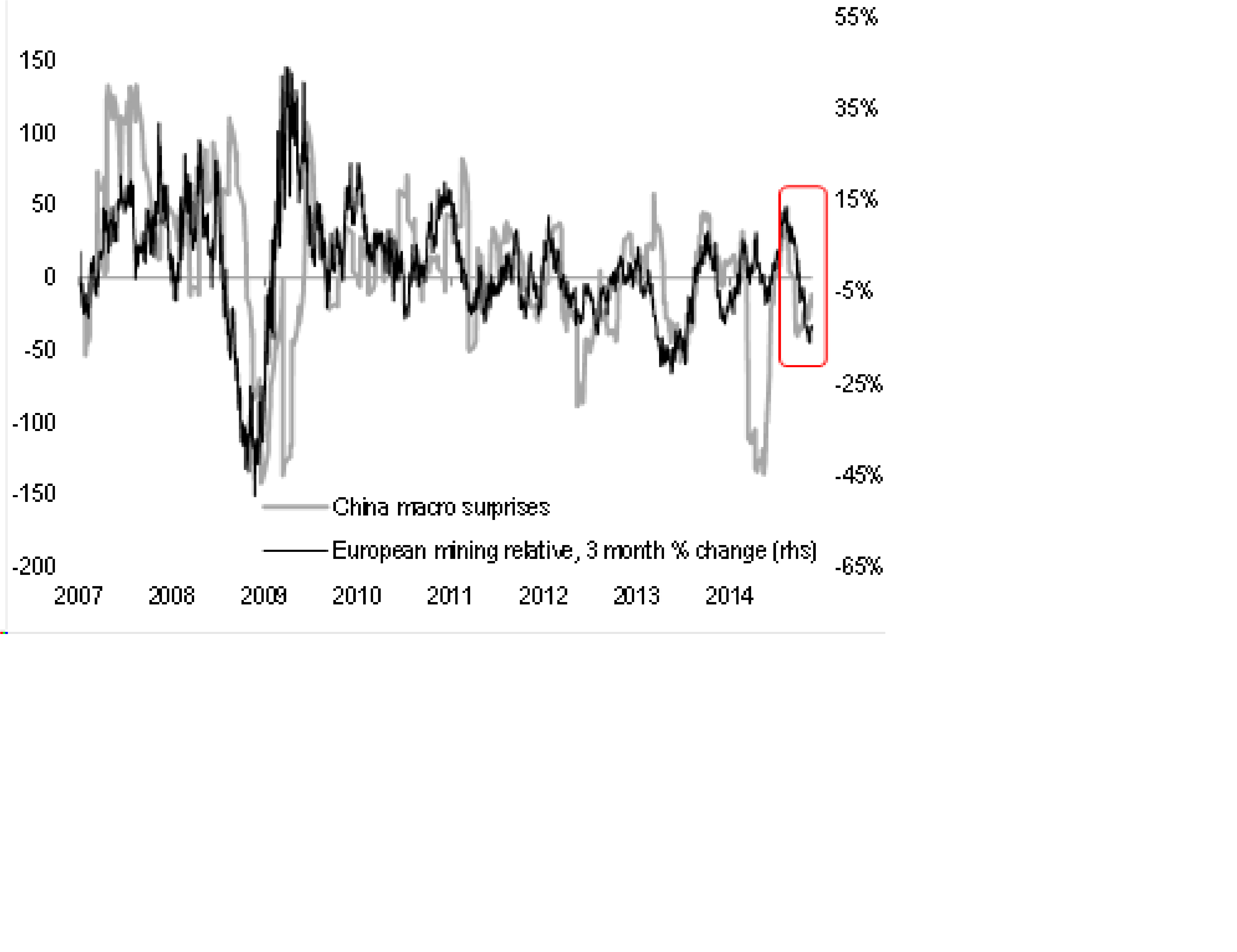 Det finns mycket negativt att säga om Kina. Fastighetspriserna har toppat ur… och gud vet var detta komma sluta (bortsett från att Kina kommer vara väsentligt större om 10 år, men det har inget med en lyckosam investering att göra). Men CS noterar att surpriseindex har studsat, och det brukar innebära att Gruvaktier här hemma går relativt bra. My take, är att det finns potential för en studs, men det är sannerligen ingen Buy and Hold ännu!