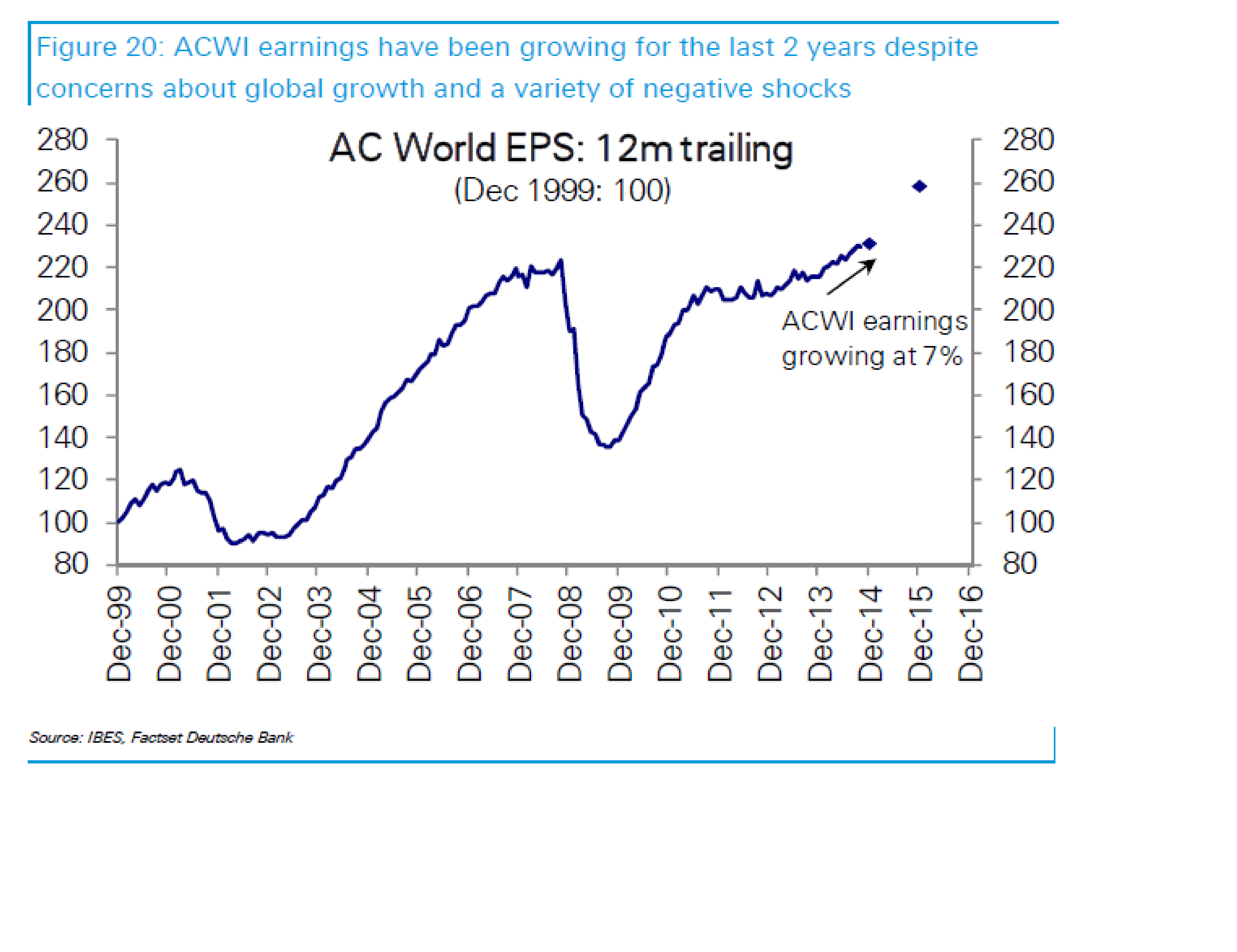 och svaret om DB får rätt är helt avhängigt Global tillväxt, då kopplingen real BNP, nominell BNP, Top line sales, Earnings, alltjämnt kommer vara intakt. Det är enkelt, kommer världen växa med 3-4% om året… ja då kommer vinsterna vara flat. kommer vi växa med 5-6% då finns utrymme för vinsttillväxt. Får vi det förstnämnda så kommer ränteuppgången bli måttlig, får vi det senare blir den lite större. Det senare scenariot är dock mest gynnsamt för aktieutvecklingen, då vinsttillväxt oftast kompenserar för högre räntor.