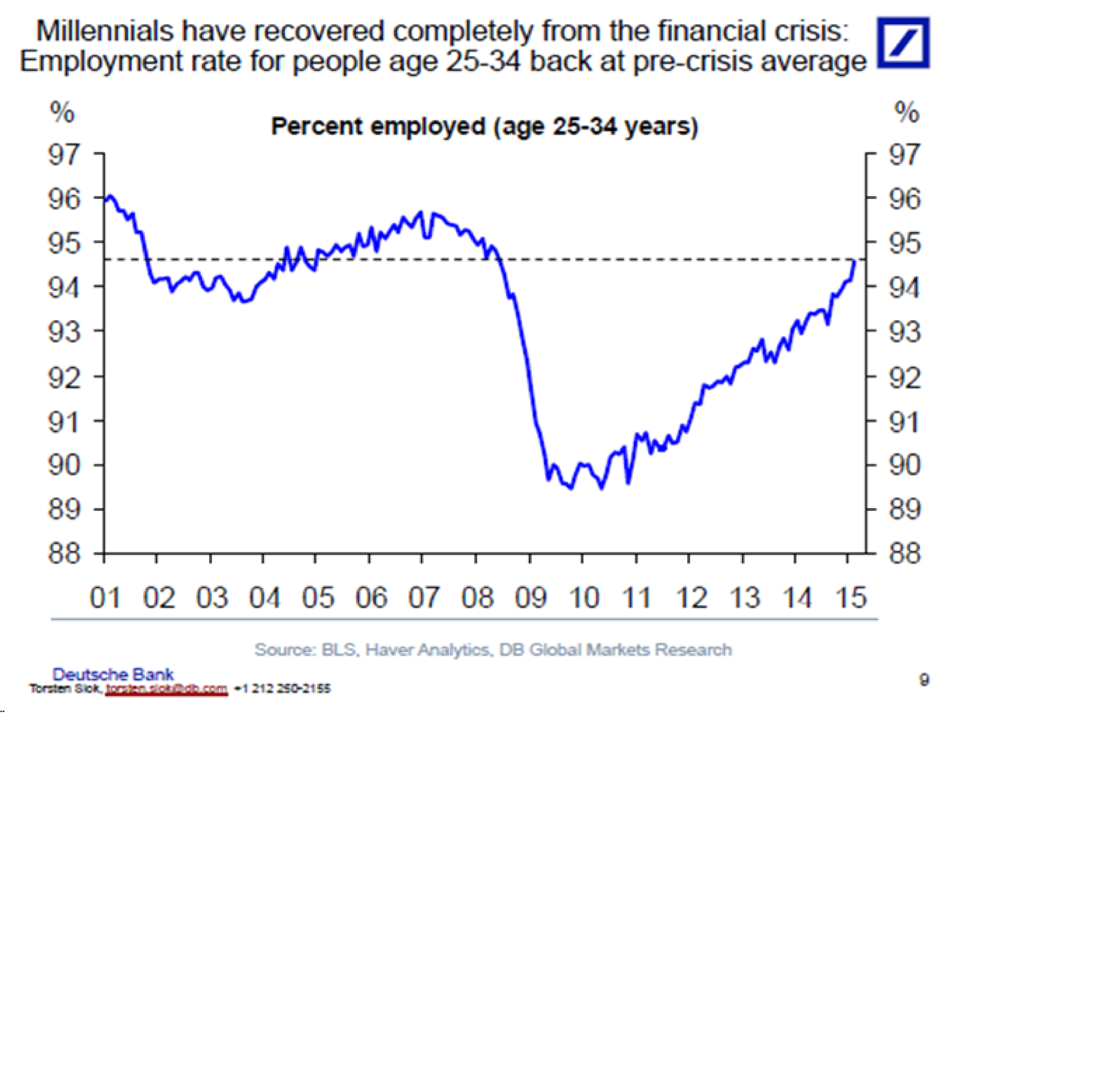 Nedan chart hade gjort Maggan grön av avund…. I USA har man varit skicklig på att få de unga i arbete. Visst, sämre skydd vad gäller lägsta löner, och en del av jobben är säkert bara part time… men ändå!