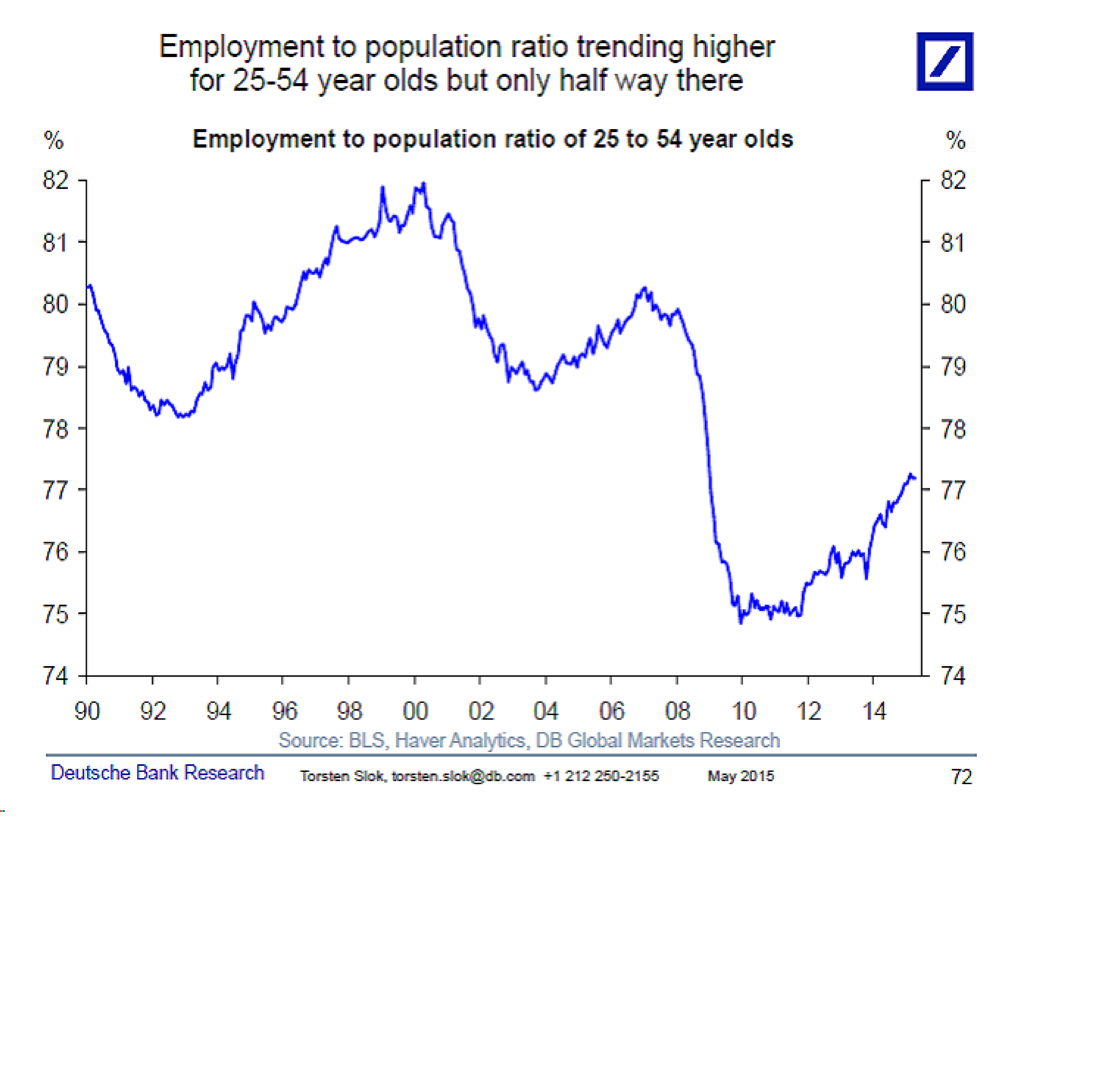 Inflationshotet på kort sikt är extremt litet nästan överallt i världen, bortsett från USA där det skulle kunna överraska. De senaste årens starka jobbskapande, kan utmynna i en ketchupeffekt, dvs så länge som det funnits ett ”slack” på arbetsmarknaden, så blir det ingen löneinflation, men för varje nyanställd så tar vi ett steg närmare ett läge där slacket försvinner, och således kan löneinflatinen kommer skjuten som ur en kanon.