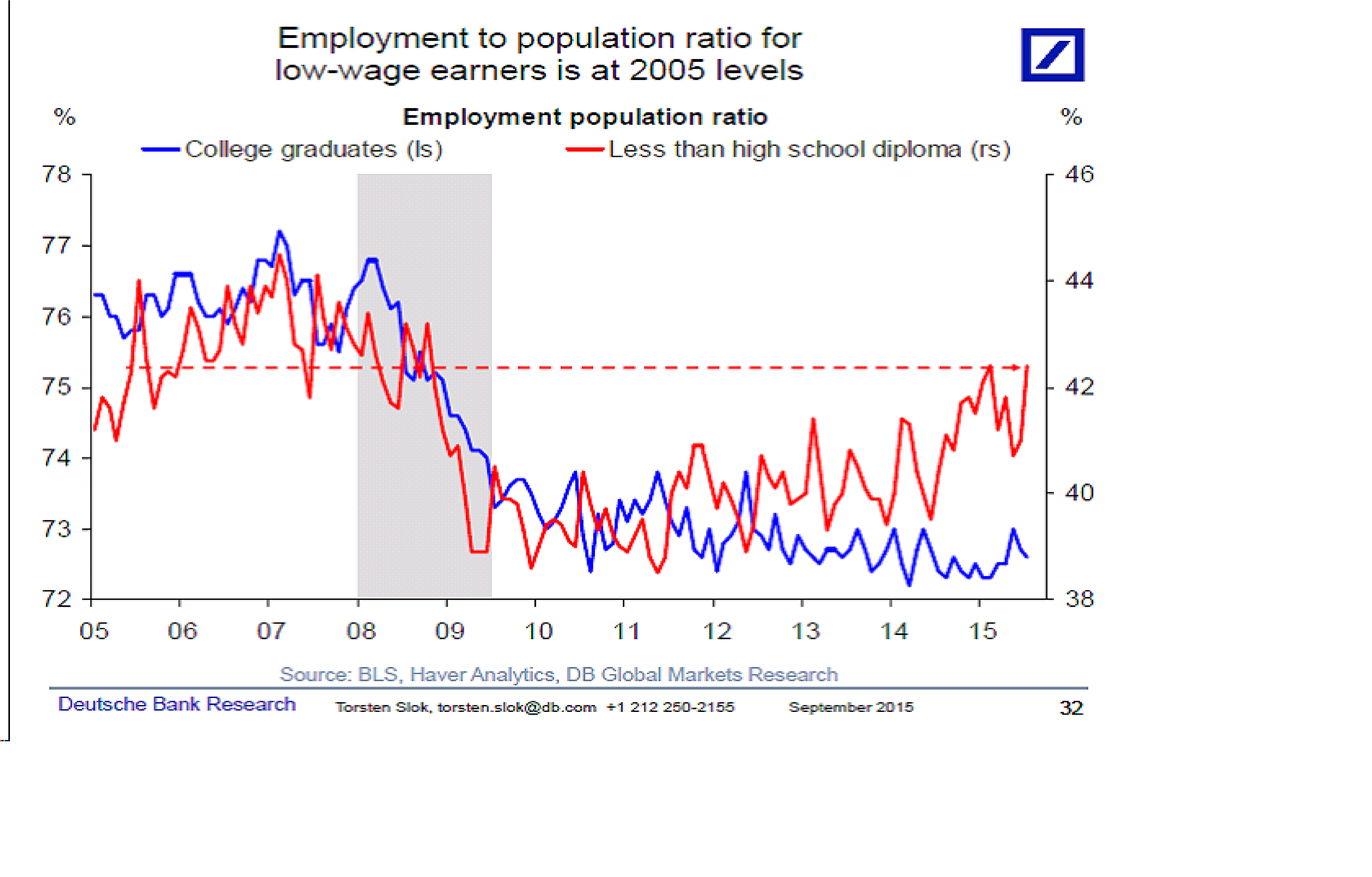 Med detta sagt vill jag flika in några charts från Deutsche… som är true beliver i att FED kan och borde höja!