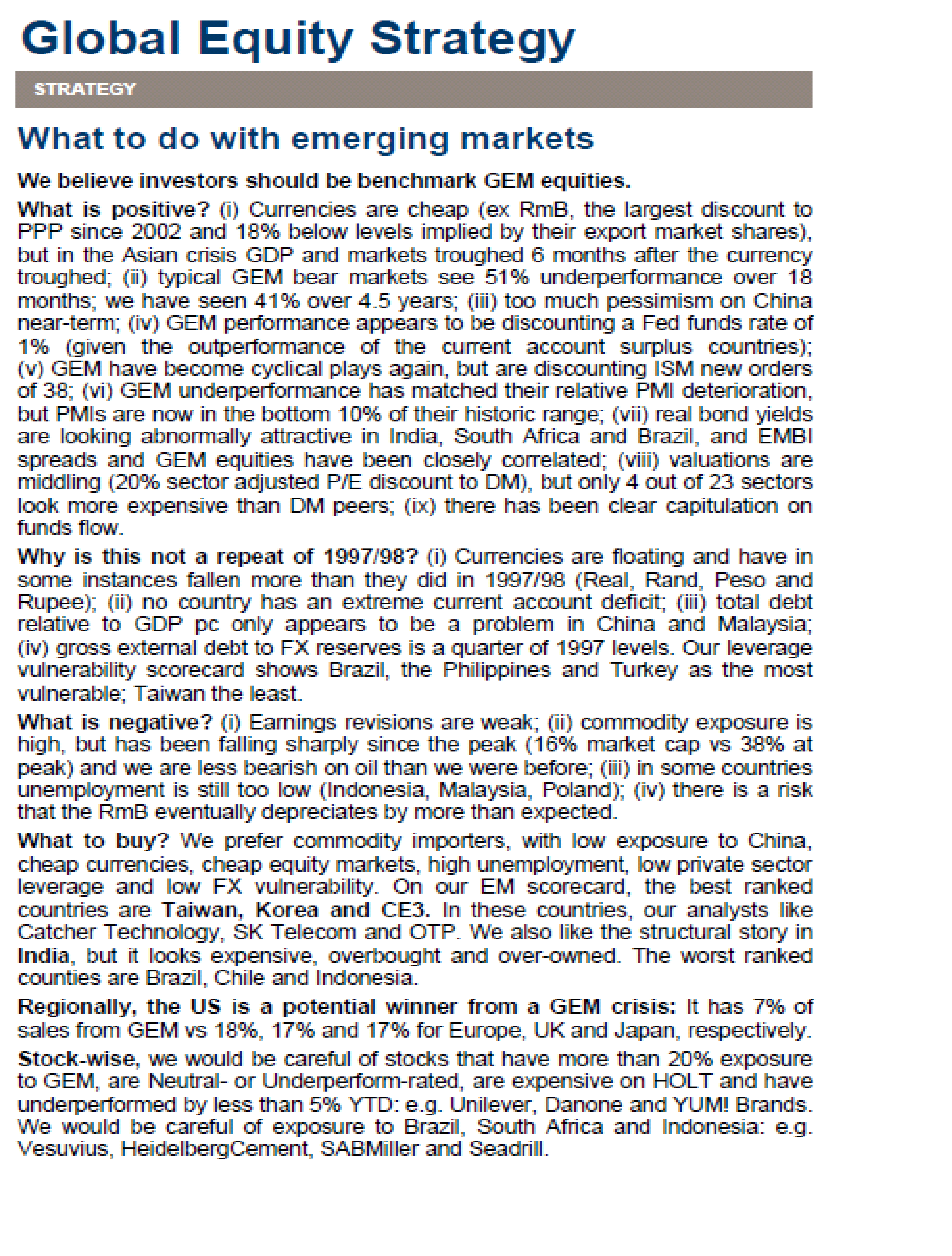 Vad gör vi med utvecklingsmarknaderna? Ja det är rubriken på en 73 sidors rapport från CS idag.